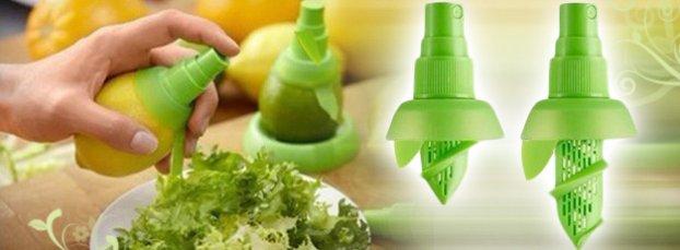 V praxi se to hodí, protože odšťavňovač citrusů s rozprašovačem Vám pomůže vymačkat šťávu z citrónu, aniž byste si zamazali ruce..