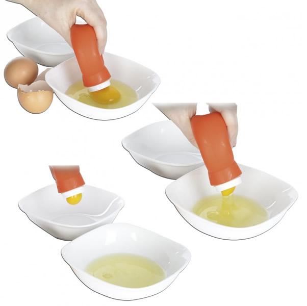 Je to užitečné do běžného provozu — praktický oddělovač žloutku Vajíčko vyklepnete celé do misky a pomocí oddělovače vcucnete žloutek do pouzdra a to vyprázdníte pomocí stlačení do jiné nádoby..