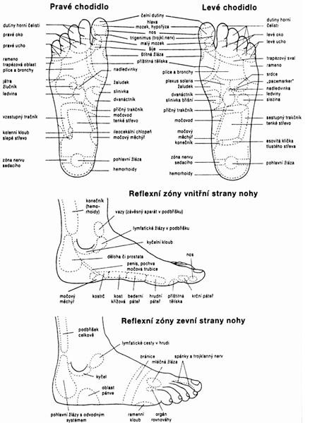 Ovlivňují reflexní body chodidel a zlepšují funkci vnitřních orgánů