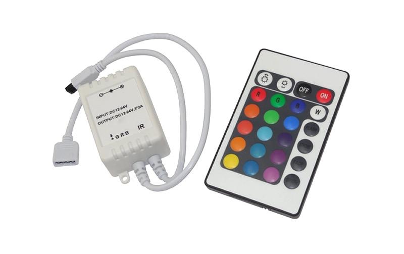 Jedná se o regulátor s infračerveným dálkovým ovládáním, který je určen ke skryté instalaci propojené elektricky s RGB LED páskem.
