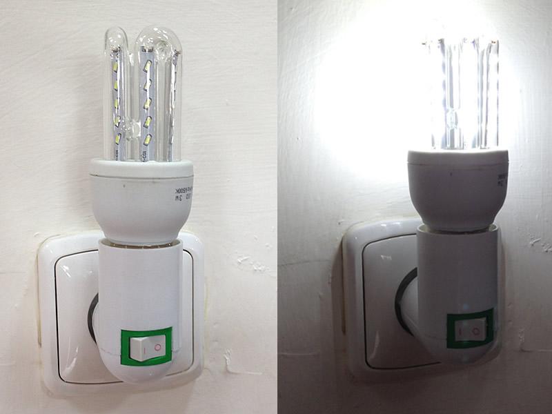 Tento zásuvkový adaptér umožňuje použití žárovky E27 (například LED žárovky) přímo do zásuvky na 220V.