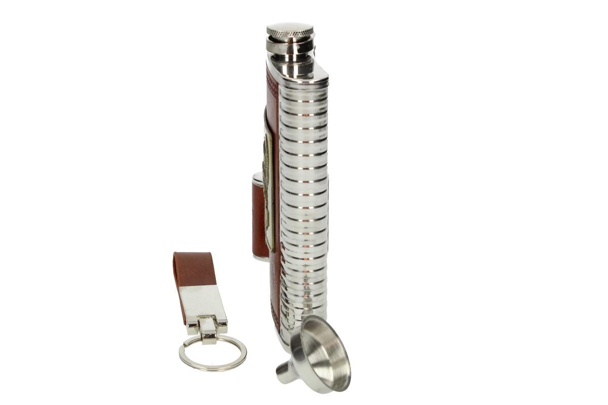- Sada pro milovníky jedné stopy, obsauhje vetší nerezovou Stainless steel 9 Oz placatici se znakem a nápisem Motor Harley Davidson Cycles + ještě jednu maličkou placatku 1 Oz a k tomu nalévací trychtýřek a ještě přívěskový závěs.