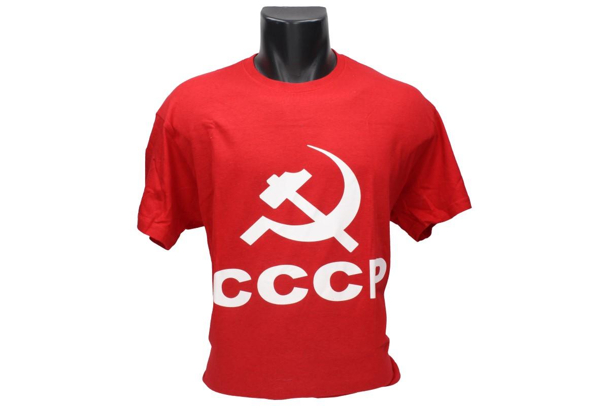 Tričko CCCP červené s bílým potiskem CCCP, srpem a kladivem, vtipné tričko vyrobené ze 100% bavlny, dodávání v různých velikostech splňující klasickou konfekci. Tričko CCCP je dodáváno ve velikostech M, L, XL, XXL