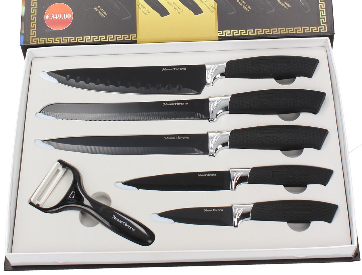 Sada 5ti nožů MESSI VERONA MV-005BLK z kvalitní oceli obsahuje: