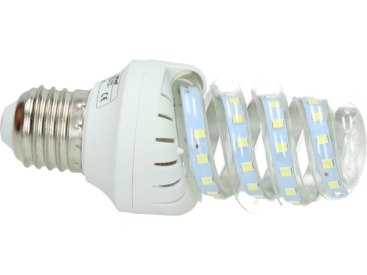 Úsporná žárovka 9W Spiral Led je LED žárovka klasického tvaru s tím rozdílem, že jsou LED CHIPY ve skleněné trubici ve tvaru baňky s nejpoužívanějším závitem E27, které svítí bílým světlem (tzv. bílá studená).