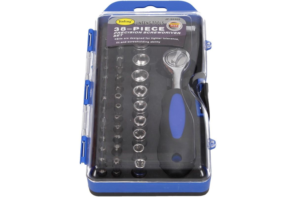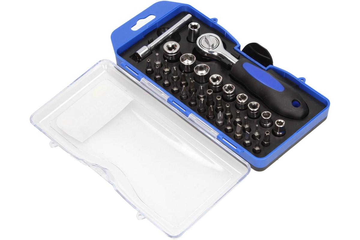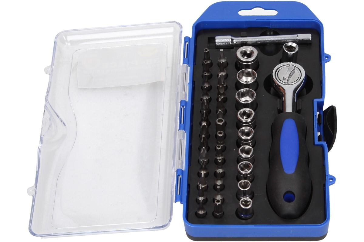 Zákazníkům to ulehčí práci: gola sada malá 1x adaptér bity 1x ráčna 1x prodloužení 9x hlavice nástrčná: , , , , 26x bity: SL , , PH , PZ , T , , HEX ..