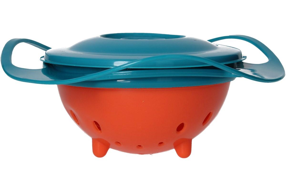 Tahle super fantastická miska, se speciální konstrukcí a rotací 360 °, jejíž otevřená část zůstane vždy nahoře, zabrání vysypávání jídla. Miska má po bocích držadla, díky kterým ji pěkně chytnou i ty nejútlejší dětské ručičky. Na spodní straně jsou umístěny malé nožičky pro lepší stabilitu na pevném podkladu. Ať s miskou manipulujete jakkoli, otevřená část zůstává vždy navrchu. Součástí misky je i speciální víko, s nímž lze obsah uzavřít. Potraviny tak vydrží déle čerstvé a chutné.