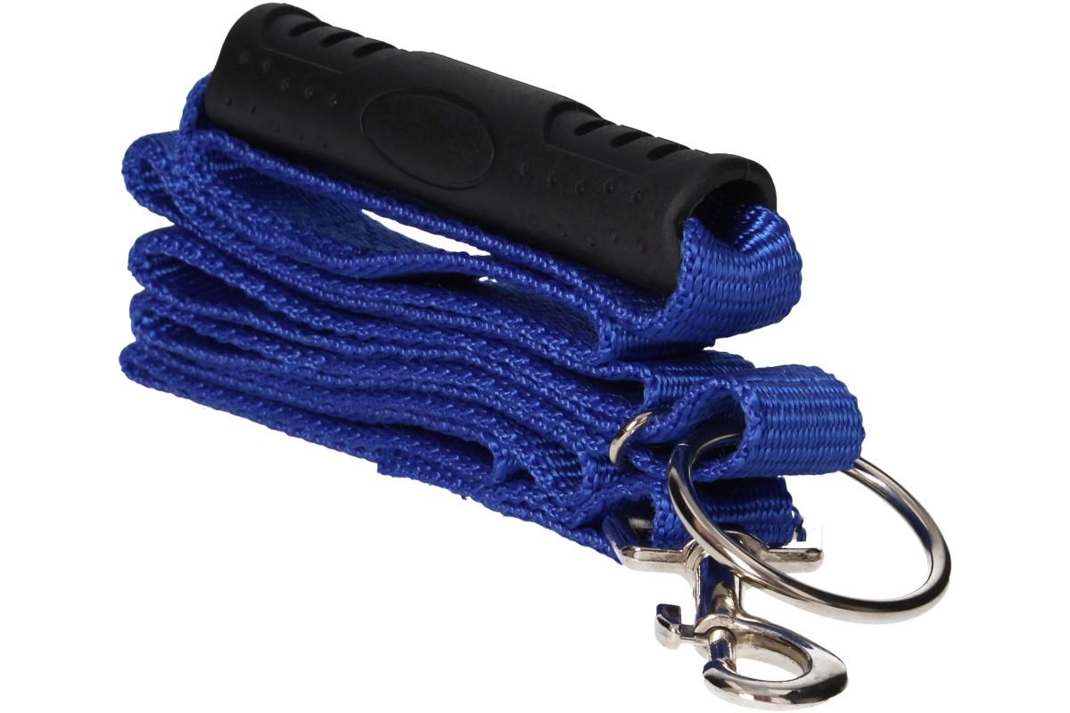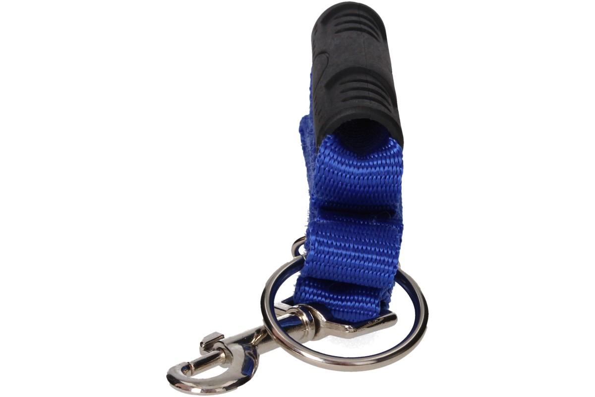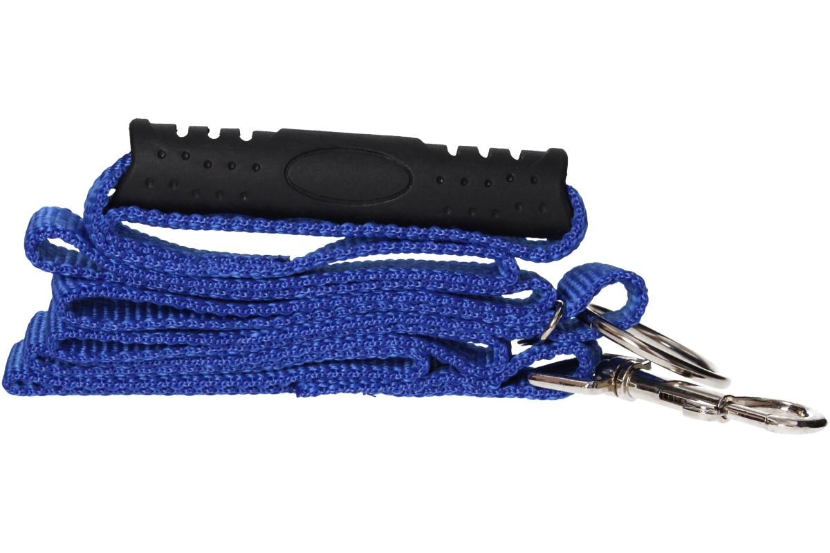 - Materiál: nylonové vodítko, gumová rukojeť, kovová karabina a oka