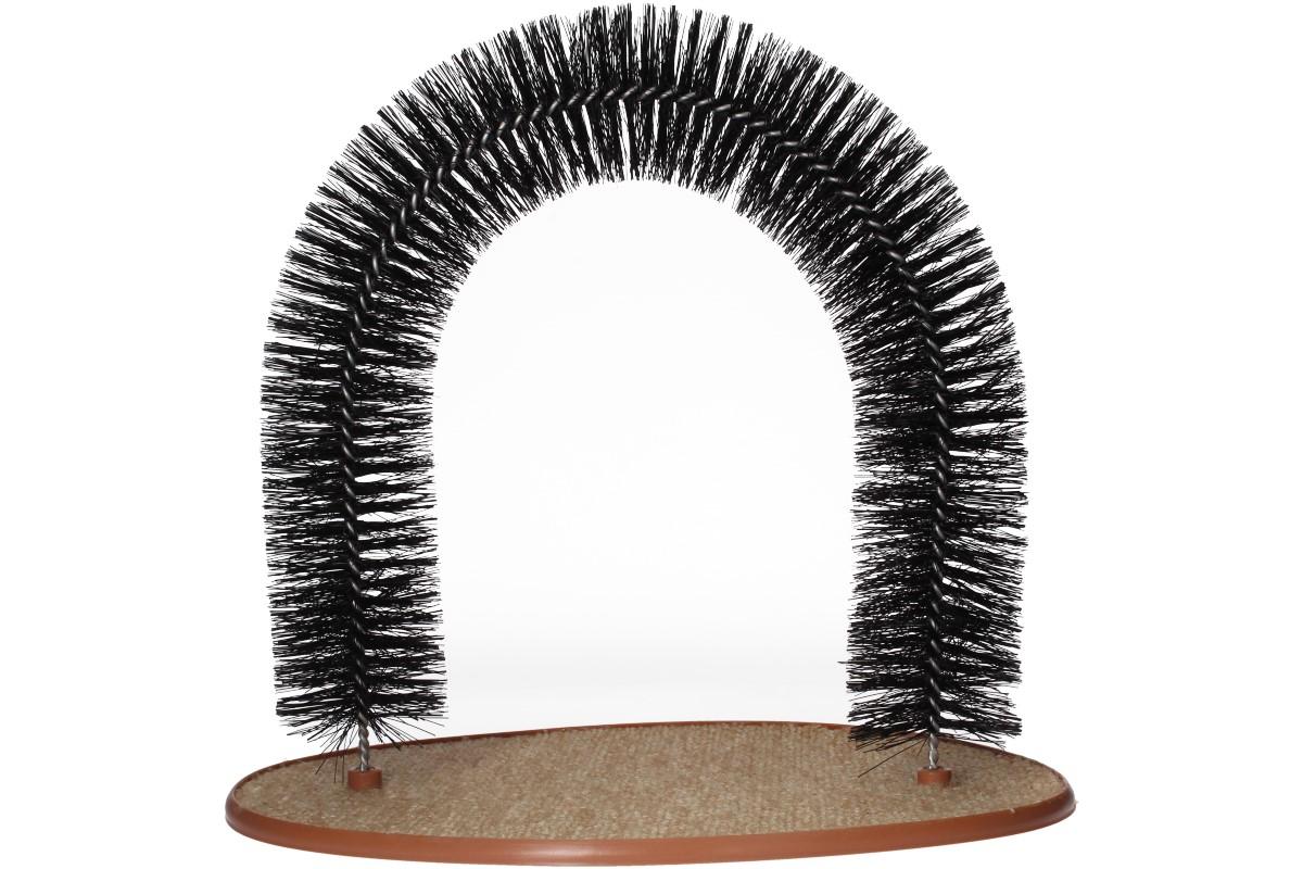 Tento na první pohled jednoduchý oblouk je stejně mazaný jako Vaše kočky. S tímto obloukem uděláte radost nejen své koččice, ale i sobě. Kočky milují zatínat drápky do koberců a do čalounění, proto je plastová podložka potažená právě kobercem. Na spodní straně je šest koleček z protiskluzové gumy. Oblouk ze štětin je jemný, ale dostatečně pevný a kočičku tak bude hladit, drbat, masírovat a vyčesávat chloupky zárověň. Vaše kočka se může nerušeně a dle své libosti pod obloukem protahovat a otírat hodiny. Díky tomu si Vy i Váše zařízení bytu odpočinete. Chloupky ze štětin snadno odstraníte vysavačem. Základnu snadno vyčistíte teplou vodou a necháte uschnout. Balení obsahuje kočičí bylinky, které se sypou buď přímo na koberec či zespodu podložky do malého otvoru pro to určenému. Vůně z bylinek pomá kočičkám se zklidnit.