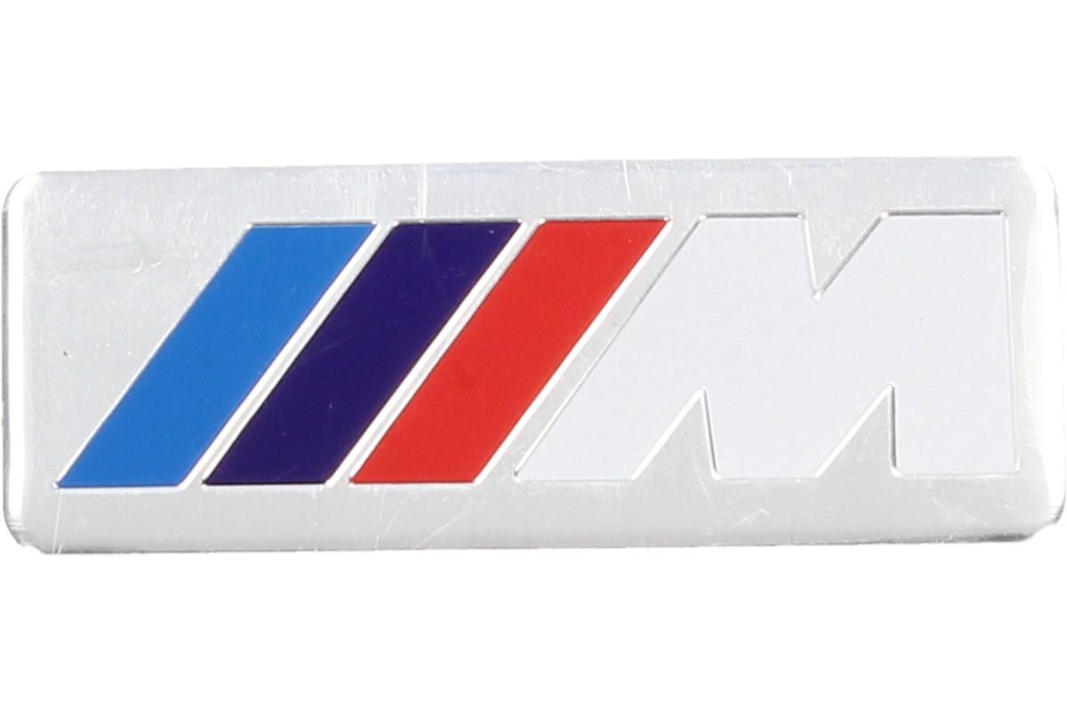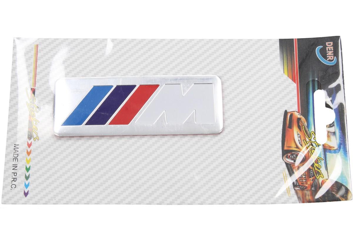 Je to užitečné do běžného provozu — kovová samolepka M bílé x Kovovou samolepku na stříbrném podkladě s barevnými pruhy a velkým bílým písmenem M ocení především majitelé vozů BMW..