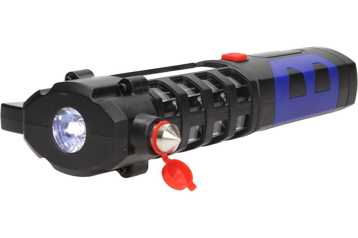 Tuto SOS baterku 6v1 určitě ocení každý řidič auta, autobusu, tramvaje i metra. S touto super baterkou lze v nouzi snadno rozbít okýnko i přeříznout bezpečnostní pás. Různé druhy a směry COB led světla, jedno standadní kulaté bílé na kourně, jedno bílé ploché na těle a dvě boční červené výstražně blikající jsou vždy dobrým a nepostradatelným pomocníkem v nečekaných situacích. Dva silné magnety slouží jak pro pevné uchycení baterky, tak zároveň i v případě, že magnetem potřebujete vytáhnout zapadlý rukou nedostupný kovový předmět. Napájena je třemi bateriemi typu AA 1,5V.