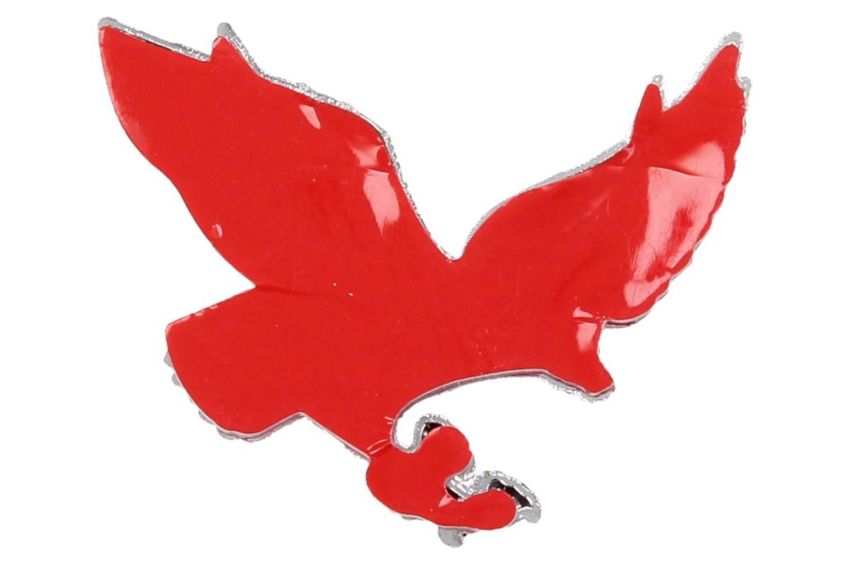 Orel je vyrobený z kovu a má chromovanou povrchovou úpravu. Rozpětí je 8 cm, výška 6 cmn a tloušťka 0,5 cm