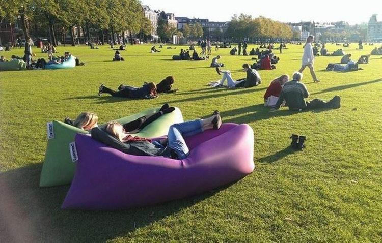 Moderní rozkládací pohovka Air sofa bed Vám zpříjemní a zpohodlní odpočinek u vody, v kempu nebo na zahradě u stanu. Nafukovací pohovka se snadno skladuje, takže Vám ušetří spoustu místa a dokonce složit ji zvládne opravdu každý. Jen otevřete stranu sacího potrubí, napustí se vzduchem jedna i druhá strana a utěsníte sponu. Je to jednoduché a praktické na výlety. Má spoustu výhod, lze použít také i jako záchranný nástroj nebo jako lehátko do vody.
