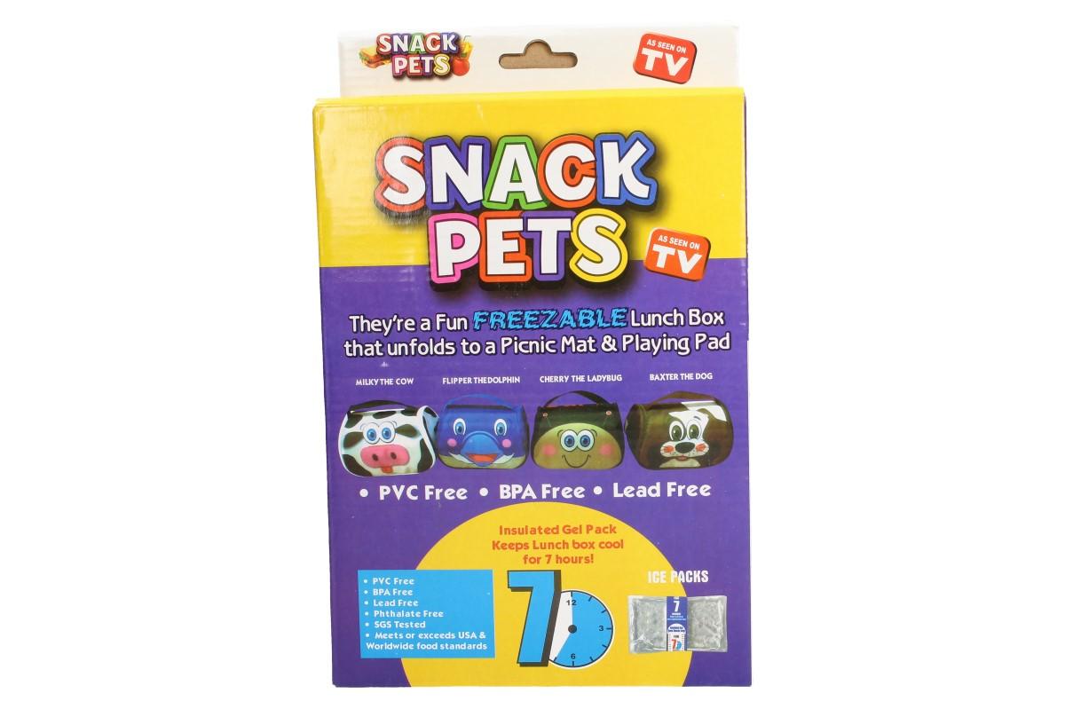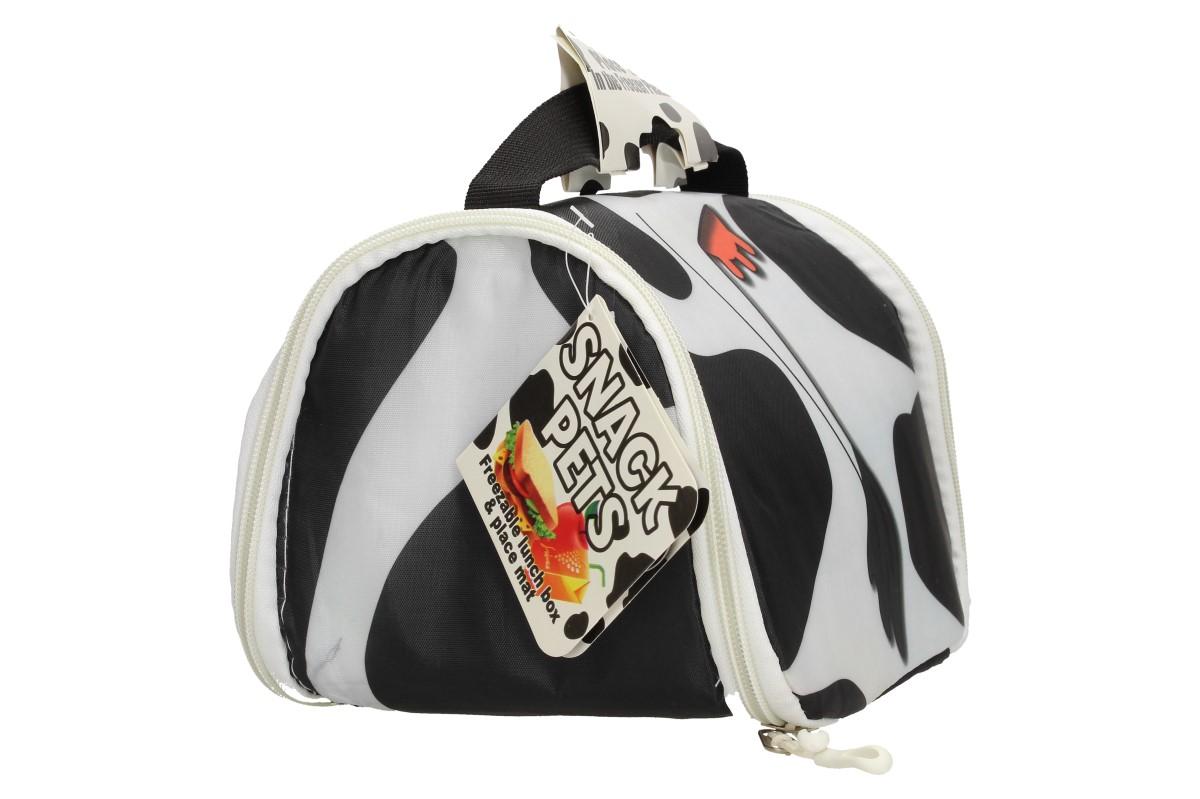 Taška na svačinu SNACK PETS Tašku si děti jistě hned zamilují a oblíbí. Lze ji rozložit na praktickou podložku, která je zdobená obrázky: pejsek, beruška, delfín a kravička. Vnitřní strana tašky je potažena pevným a omyvatelným obalem, takže se nemusíte bát, že se zašpiní a lehce ji omyjete. Chladící taška vydrží chladit až 7 hodin v kuse.