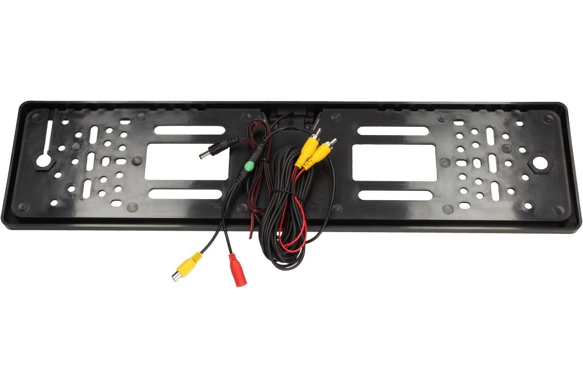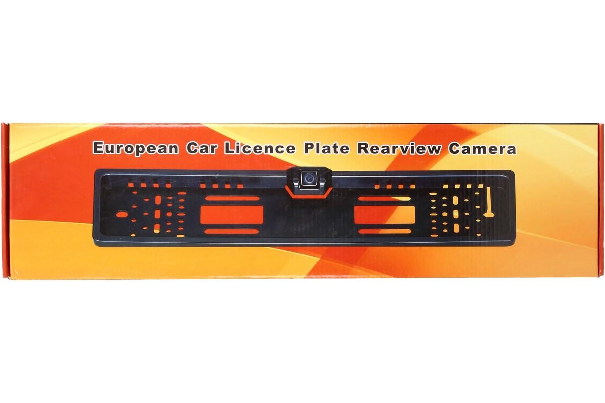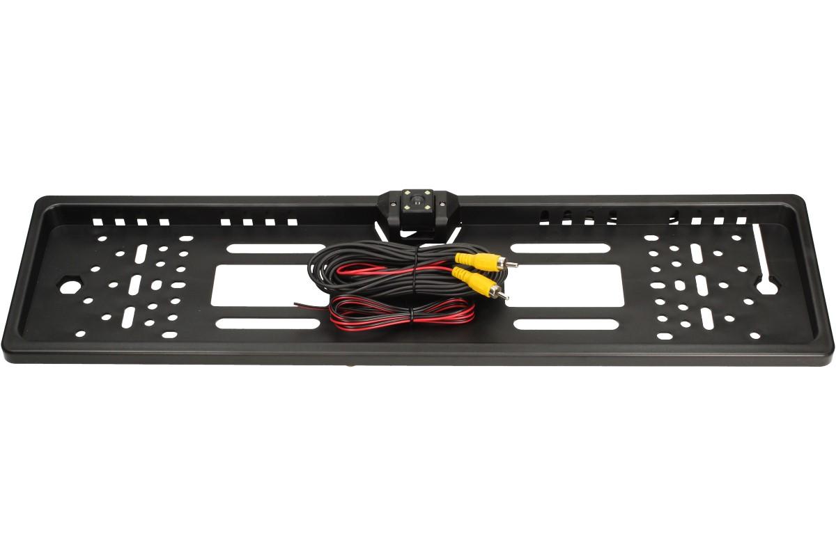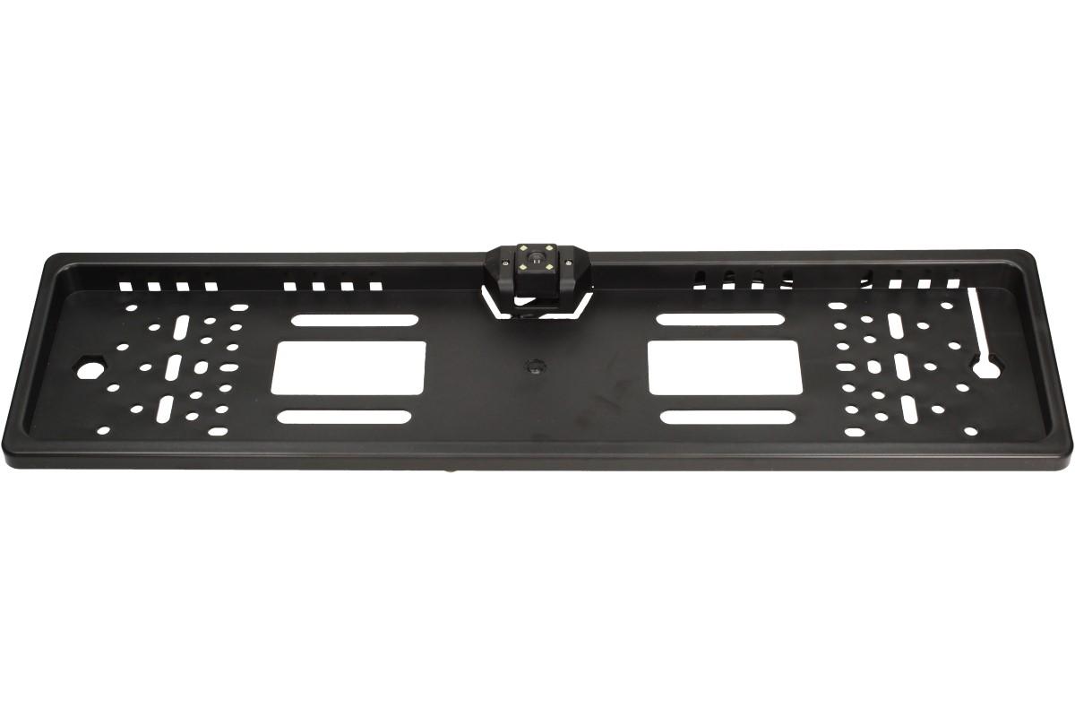 Evropský rámeček na poznávací značku s kamerou je dobře přilnavý a velice pevně drží SPZ i přes to, když dojde k menší kolizi a nárazu. Rámeček je vyroben z pevného, kvalitního plastu. Tabulka s rámečkem pod SPZ je navržena tak, aby při jízdě nedošlo k její ztrátě. Tabulka obsahuje navíc rezervní kameru pro zpětné přehrávání. Plocha obrazu: 5,961 mm x 4,276 mm. Úhel zobrazení: 170°. Napájení: 12 V. Barva rámečku je černá a je odolná běžně používaným chemickým prostředkům v automobilovém průmyslu i běžnému mechanickému opotřebení (myčka, posypová sůl, atd..). Plastová podložka pod státní poznávací značku nebo tabulku registrační značky má otvory pro univerzální montáž.