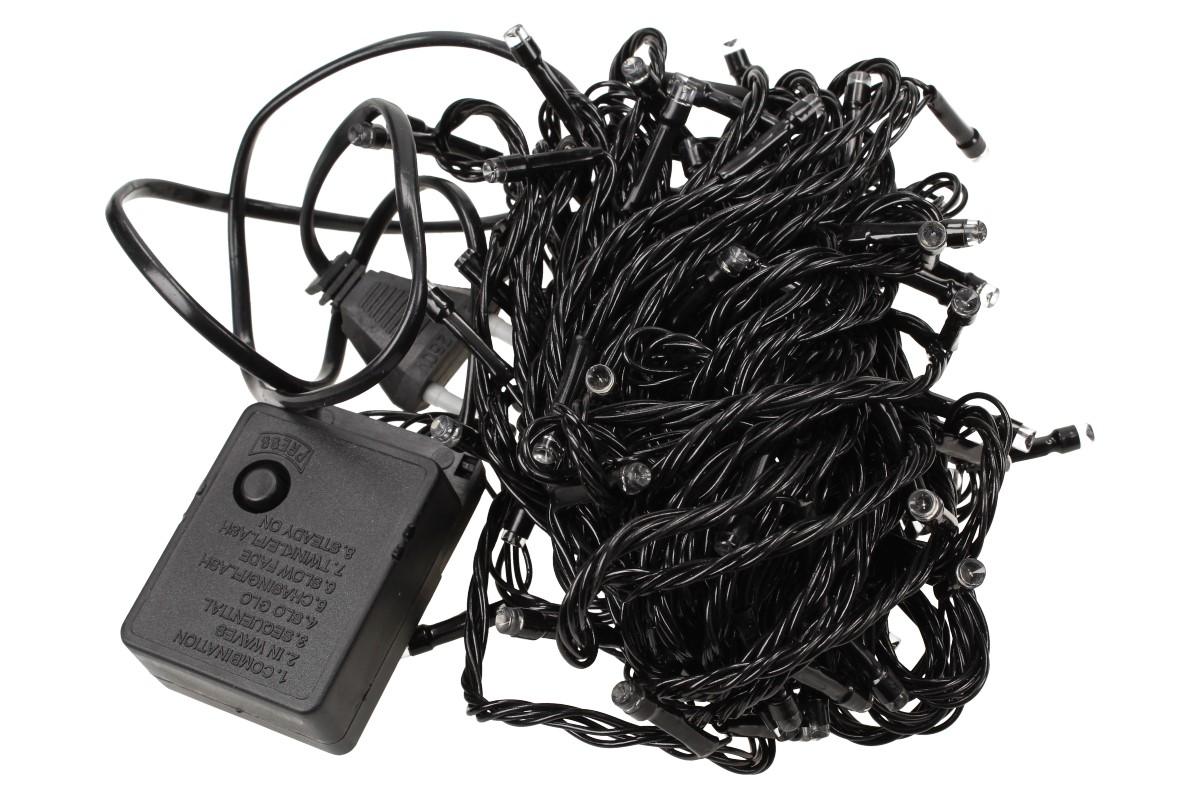 Vánoční bílé Osvětlení 100 Led Diod v kvalitním provedení s možností přepínání mezi jednotlivými blikajícími nebo svítícími módy. Vánoční řetěz v bílé barvě. Délka vánočního řetězu je 8 metrů. Ideální využití na vánoční stromeček, výlohy, okna, dveře nebo i podél zdi. Řetěz je odolný vůči chladnému i teplému prostředí.