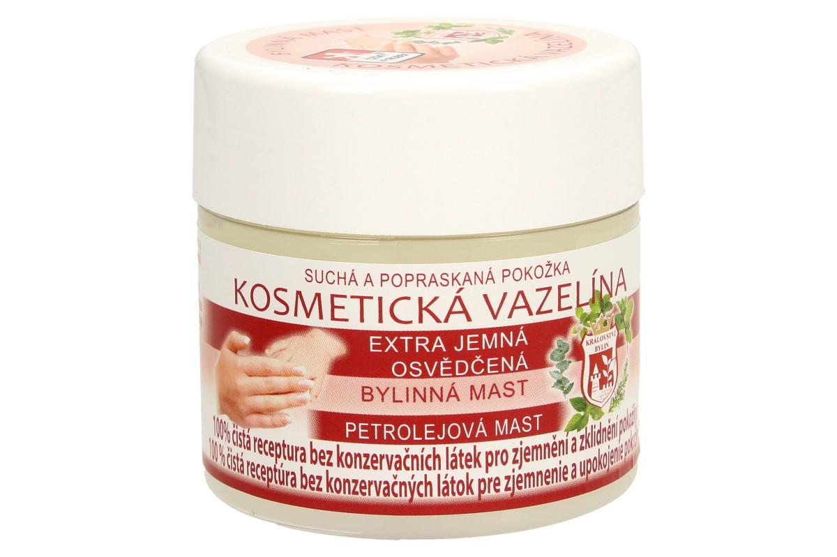 Zákazníkům to ulehčí práci: bylinná mast - kosmetická vazelína Bylinná mast - kosmetická vazelína extra jemná kosmetická vazelína pečuje o suchou, drsnou a popraskanou pokožku..