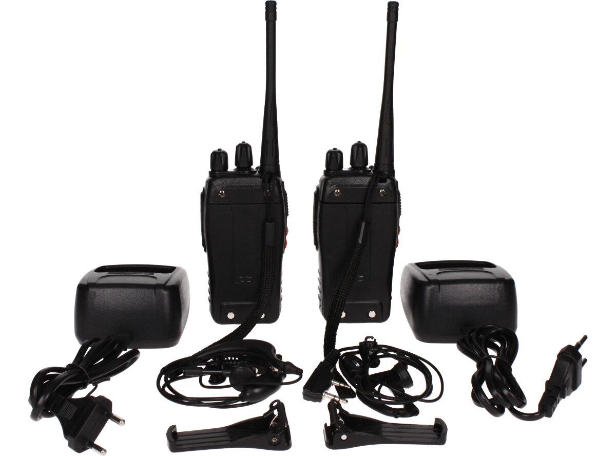 - Obsah balení: 2x vysílačka, 2x anténa, 2x nabíjecí základna, 2x poutko na pověšení, 2x zarážka na opasek