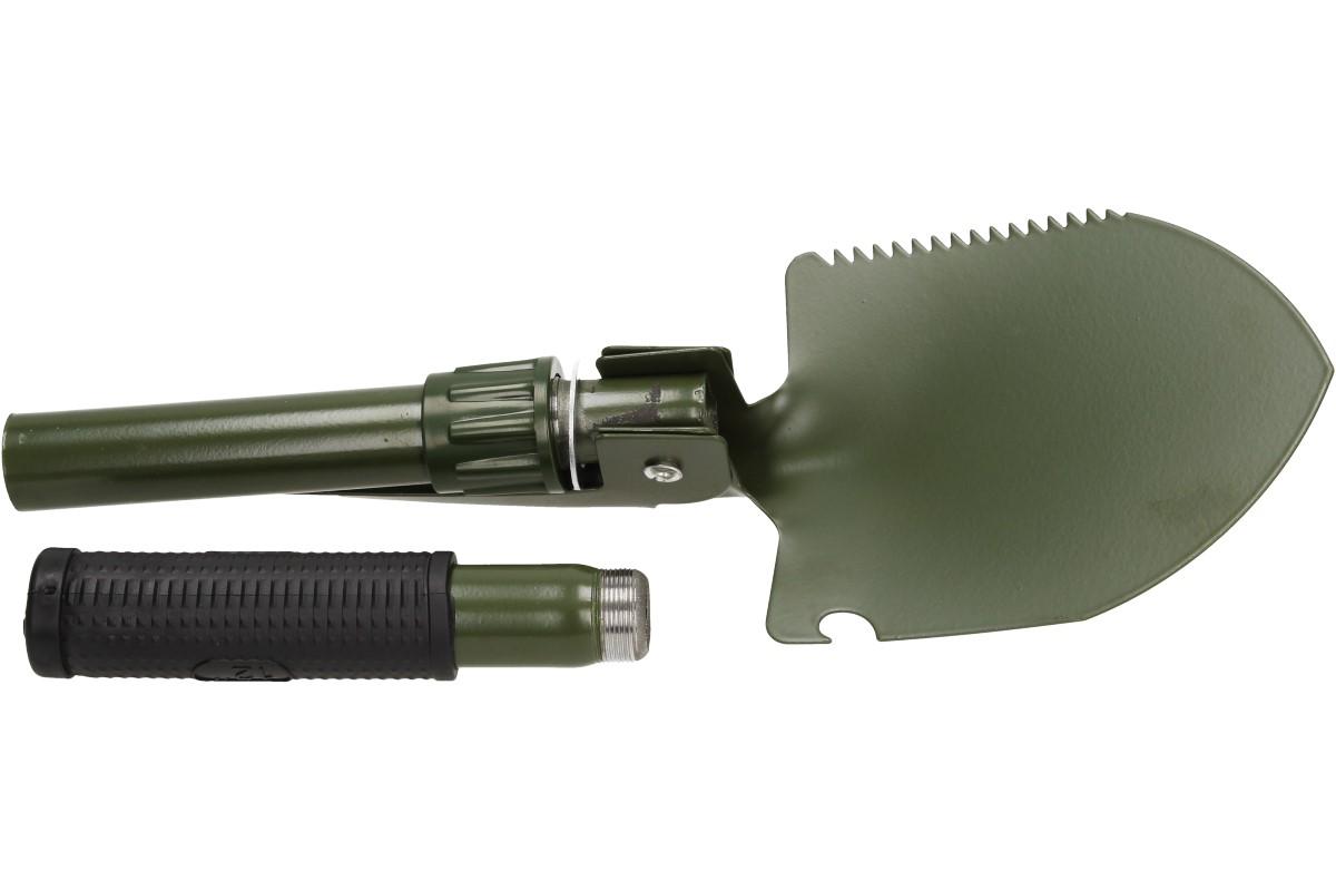 Skládací lopatka s pouzdrem malá v kovovém provedení o délce 41 cm a nabírací plochou 10 x 13 cm. Je skvělá pomůcka pro všechny trampy, rybáře, militaristy, hledače pokladů a milovníky outdoorových aktivit. Je možné jí využít i na zahradě, chalupě, nebo ji pro všechny případy vozit stále v autě apod. Lopatka má více funkcí. Lze jí složit do polohy rýče nebo motyky a má ozubenou hranu, která může posloužit v přírodě jako pilka. Navíc lze lopatku složit do praktického nepromokavého pouzdra, které lze umístit na opasek, a tak máte lopatku v přírodě stále po ruce.