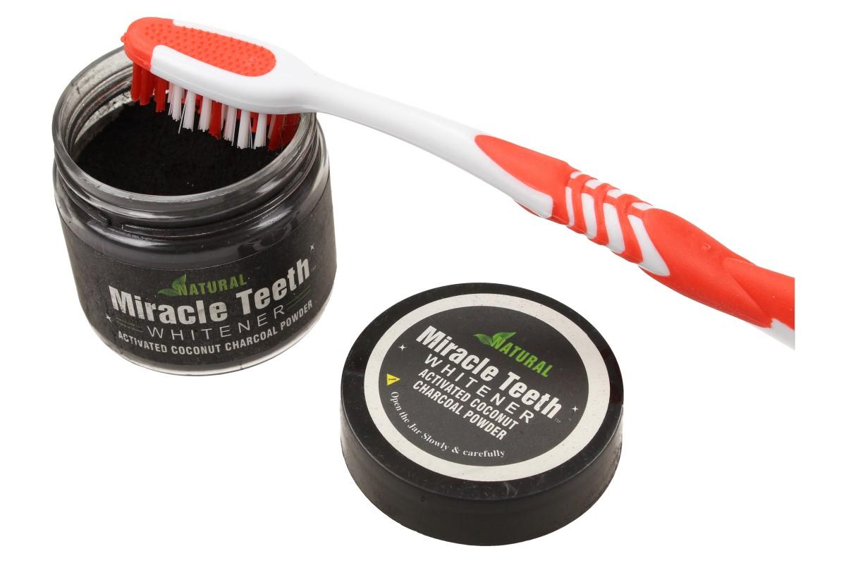 Přírodní bambusové uhlí pro bělení zubů Miracle Teeth je kouzlem pro dokonalý úsměv čistě bílých zubů. Prášek Miracle teeth vybělí vaše zuby, bez ohledu vašeho původního zabarvení a znečištění. Přírodní bambusové uhlí účinně vyčistí všechny nečistoty na zubech a zlikviduje zubní plak a zničí žluté zbarvení. Černé přírodní bambusové uhlí pro bělení zubů si jednoduše naneste na kartáček s pastou na zuby a čistíte tak, jak jste zvyklí (cca 2 minuty jemnými krouživými pohyby).