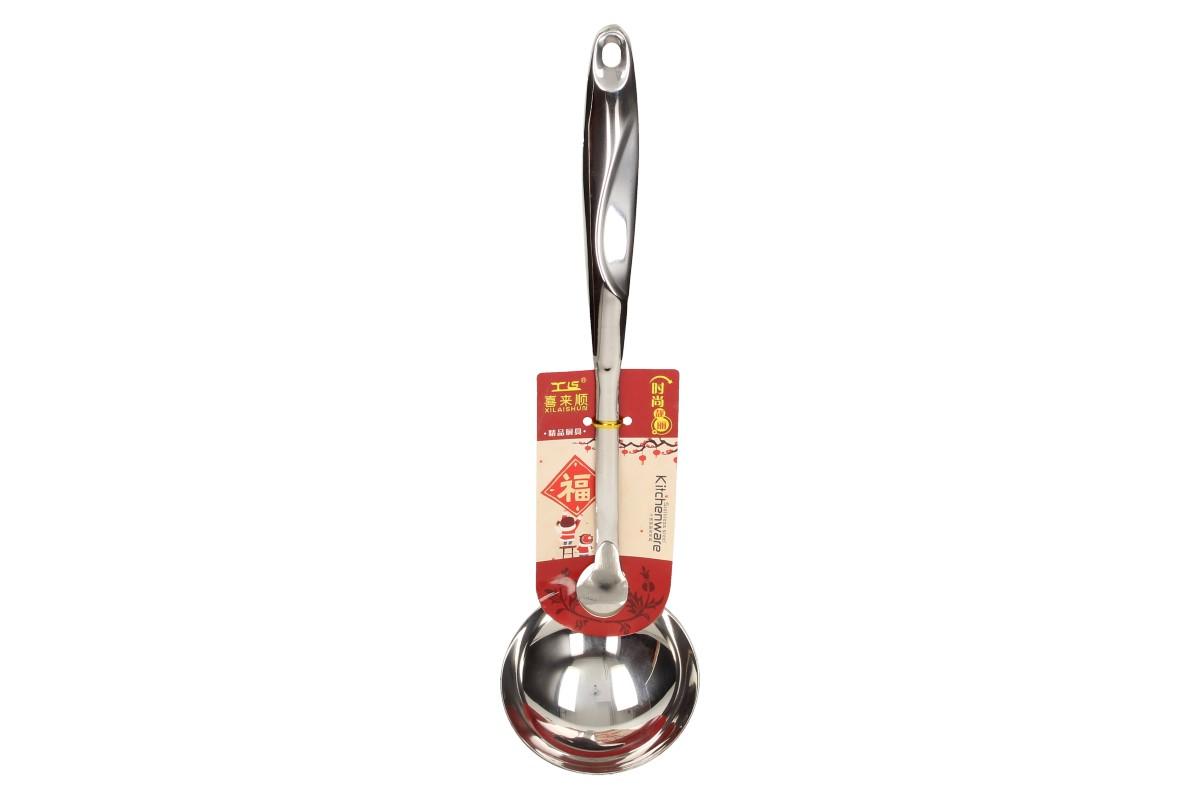 Naběračka je vhodná pro servírování polévek, omáček, zálivek aj. Její průměr je je 10 cm a je vysoká včetně rukojeti 35 cm.