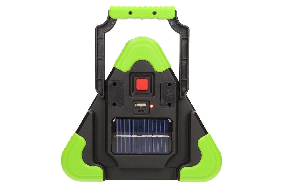 Multifunkční pracovní světlo trojuhleník je geniální pomocník při práci venku i uvnitř a to především ve tmě. Skvěle poslouží jako výstražný blikající trojůhelník při poruše auta na silnici. Malá, lehká a přenosná velikost světla ve tvaru výstražného trojúhleníku, vám pomůže tam, kde ostatní světla selhávají. Program světla se snadno přepne na zadní straně. Červené světlo má tři funkce, trvalé a blikající červené světlo ve dvou rozdílných fázích. Bílé LED světlo uprostřed s dvěma úrovněmi svícení. Praktický držák do ruky, poslouží i jako závěsné ucho. Trojúhelník stojí i samostatně bez opěrky. Skvělé je i nabíjení této lampy, solární panel, USB nabíječka, zaručují že už nikdy bez světla nezůstanete. Ideální pro kemping, rybaření, horskou turistiku, ale také při výkopových pracech, opravách atd. Toto světlo dodáváme ve třech barvách, zelená, stříbrná, žlutá.