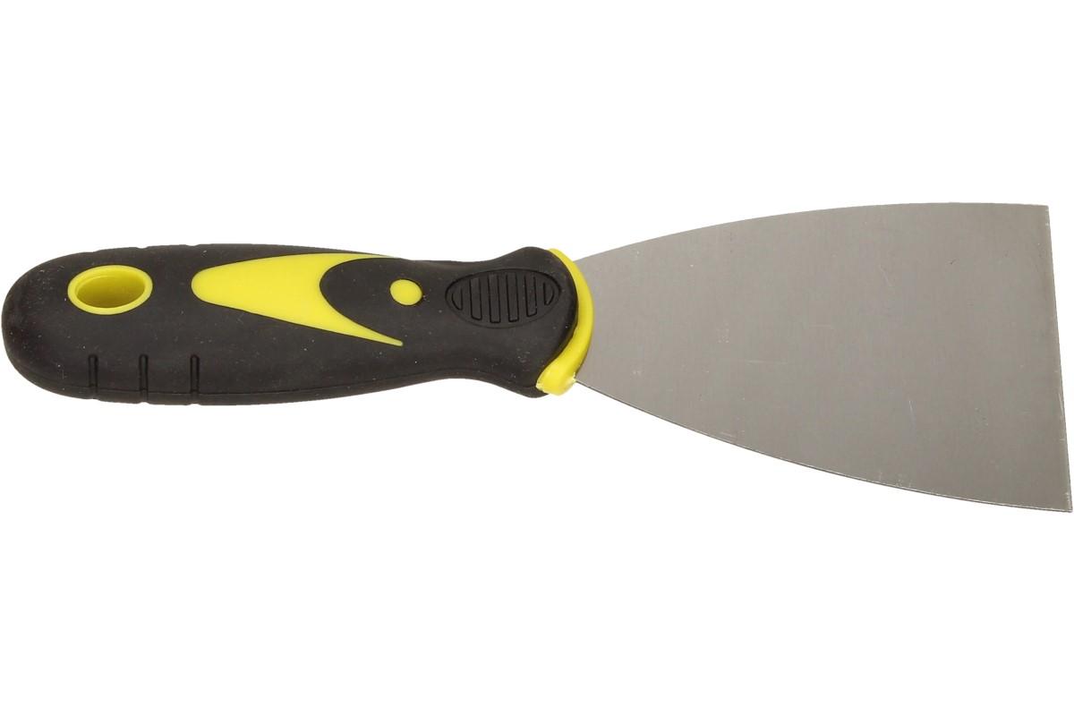 Špachtle s kovovým tělěm a pogumovanou rukojetí s protiskluzovým bodem na palec vás nenechá ve štychu při štukování, škrábání omítek, při tmelení apod.