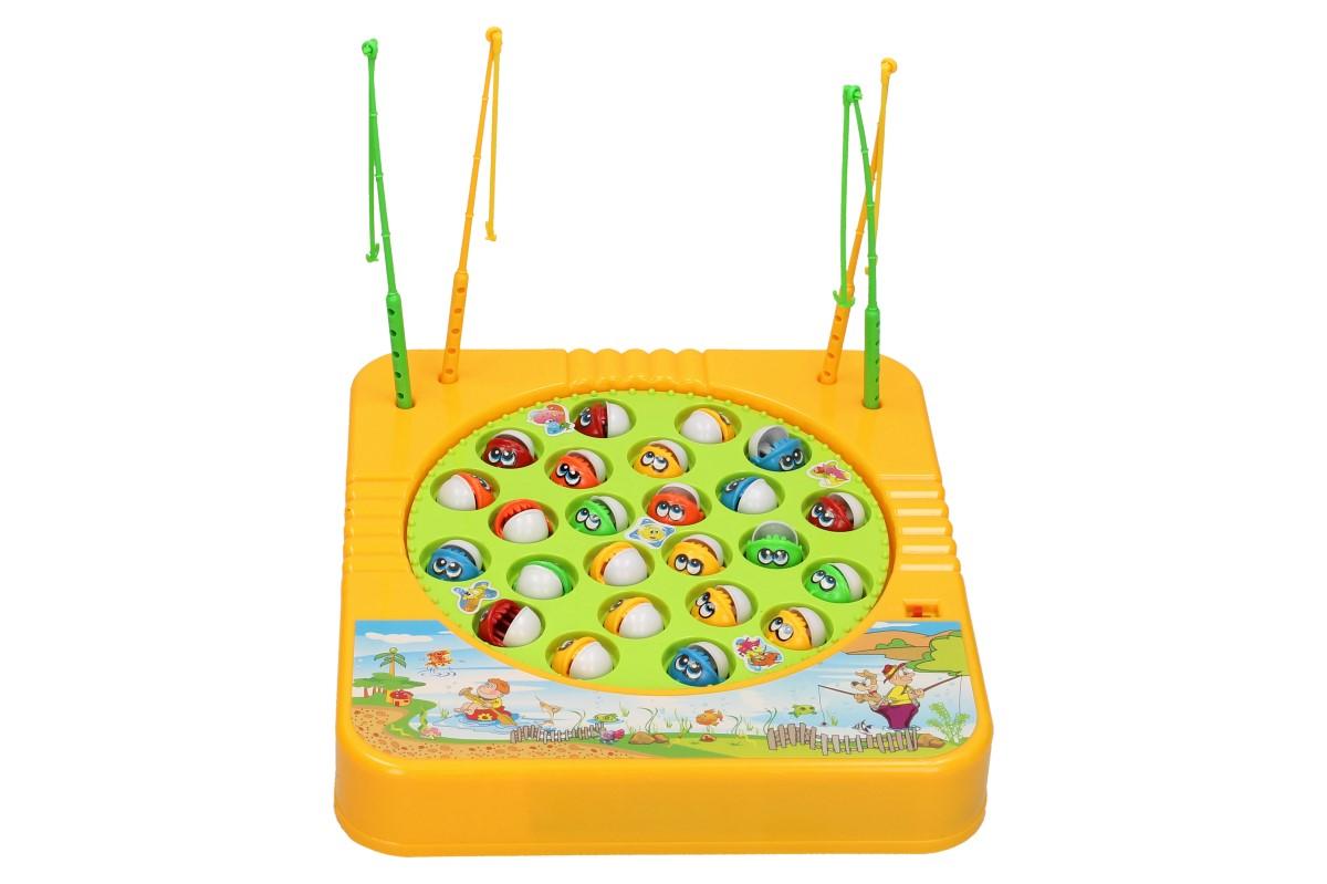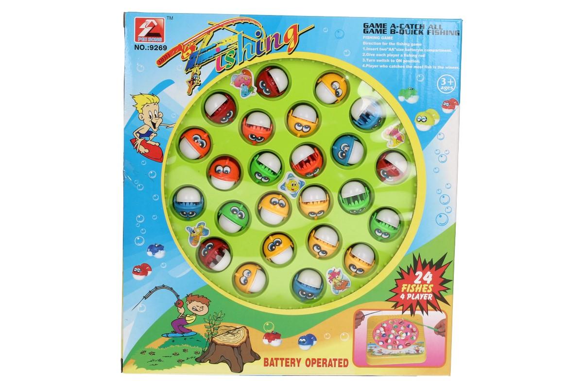 Pohyblivá rybářská hra pro 4 lidi - Ulov co nejvíce rybiček do svého košíčku a staň se vítězem. Pohyblivá hra s melodií pro celou rodinu. Ideální, zábavný dáreček pro vaše dětičky. Hra obsahuje 24 barevných rybiček, 5 prutů, hrací desku a melodii jako doprovod. Návod pro rybářskou hru: - Vložte 2 baterie typu AA - Dejte každému hráči rybářský prut - Přepněte spínač do polohy ON (zapnuto) - Můžete začít chytat ryby - Vítězem je hráč, který chytí nejvíce ryb.