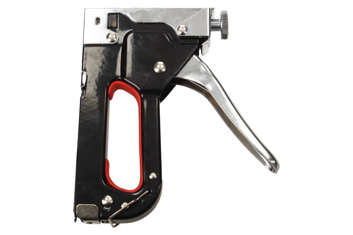 Kvalitní sponkovací pistole s celokovovou konstrukcí. Ergonomická rukojeť s gumovou výstelkou pro snadné a dlouhodbé nastřelování spon jednou rukou. Šroub pro nastavení síly úderu dle velikosti spony a tvrdosti materiálu. Velkokapacitní zásobník pro dlouhodobu práci bez potřeby doplňování, rychlá výměna spon. Určena k připevňování textilií, fólií, kůže, lepenky, dekoračních a izolačních materiálů na dřevěný podklad nebo dřevu podobný materiál