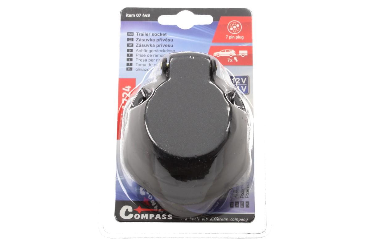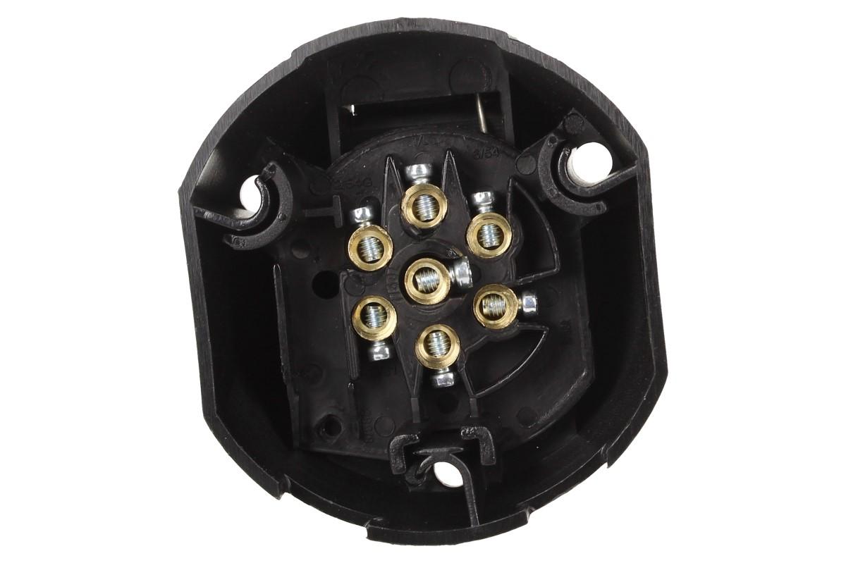 Zásuvka tažného zařízení 7 pólů se většinou používají u nových tažných zařízení a přívěsů. Zásuvka tažného zařízení je vybavena těsněním a krytem, který se automaticky uzavírá. Zásuvka pro tažné zařízení 7 pólů automobilu dle normy DIN 1724. Maximální napětí je 12-24V.