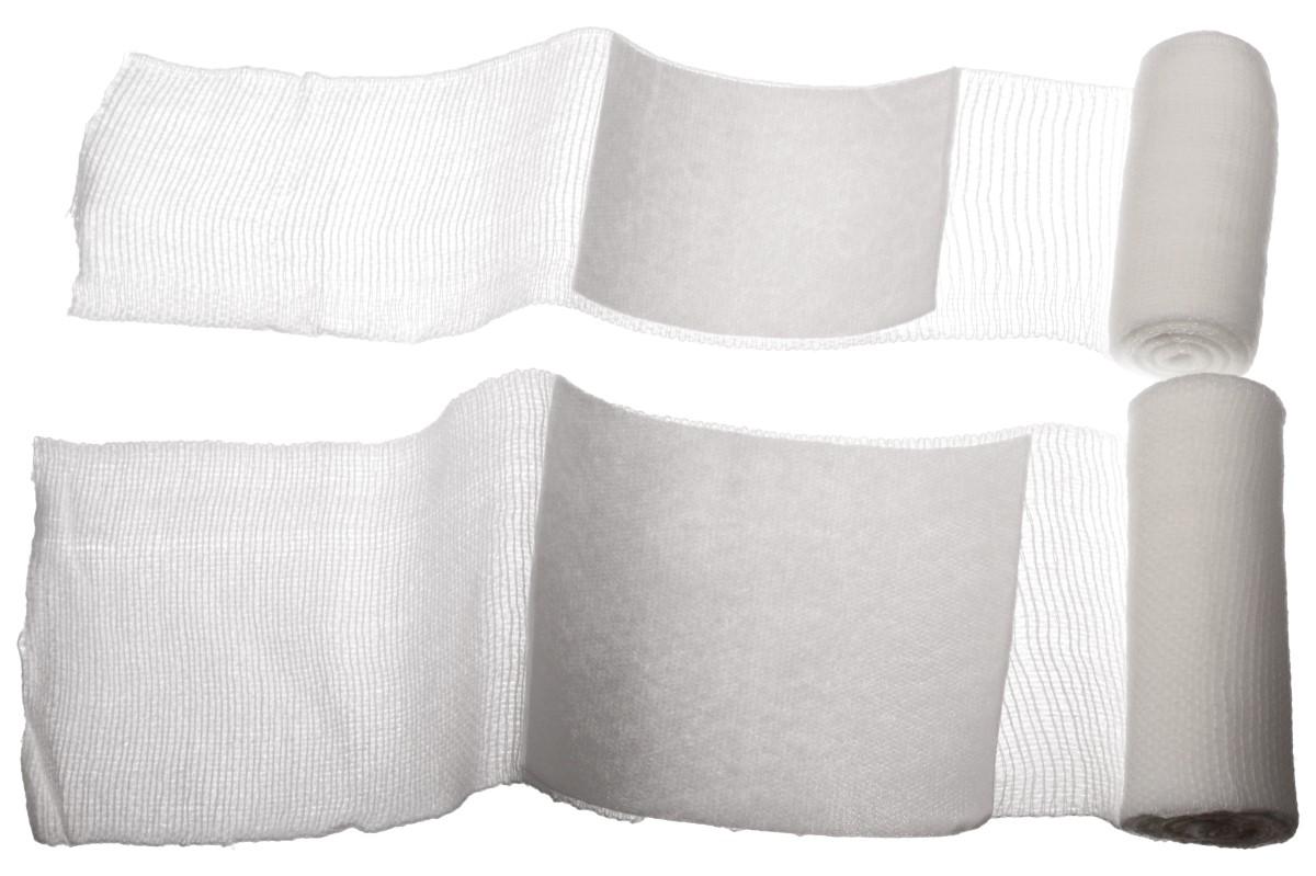 - Skládá se z hydrofilního obinadla a pevně připevněného vysoce savého vatového polštářku.