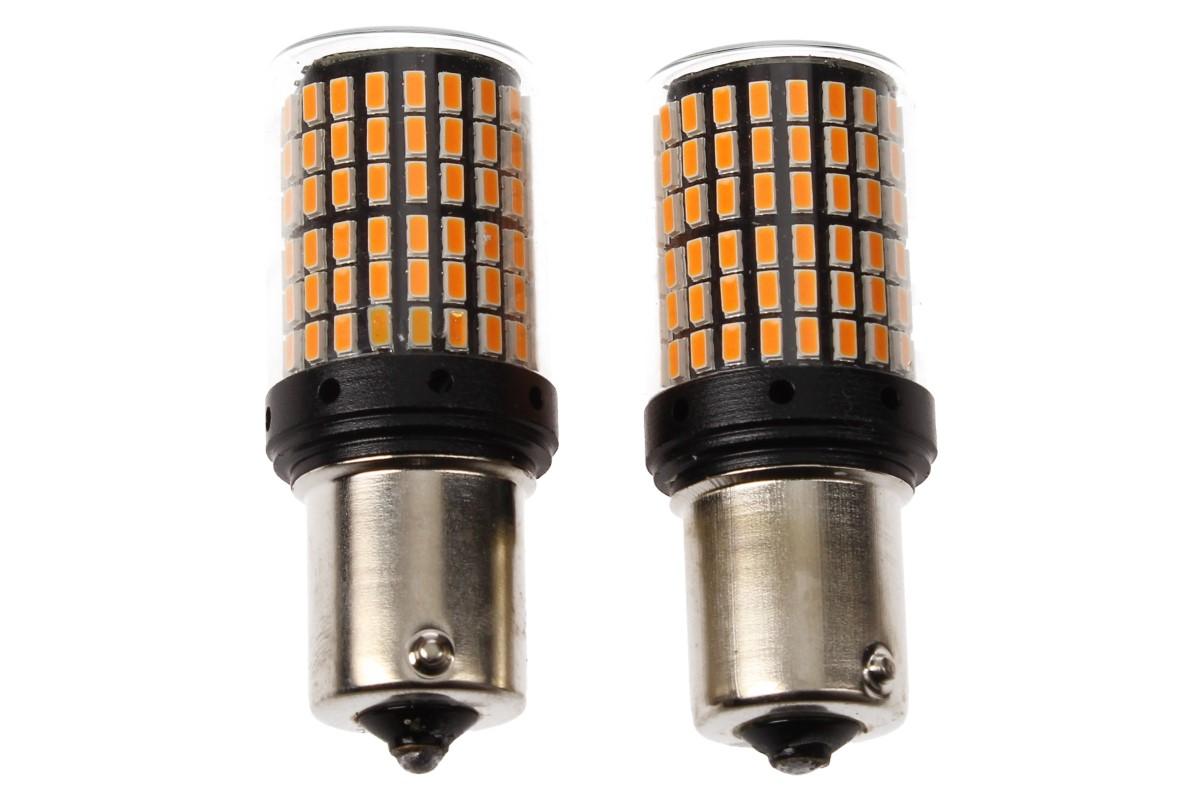 Oranžová LED žárovka do auta BAY15s sada 2ks jednopólová