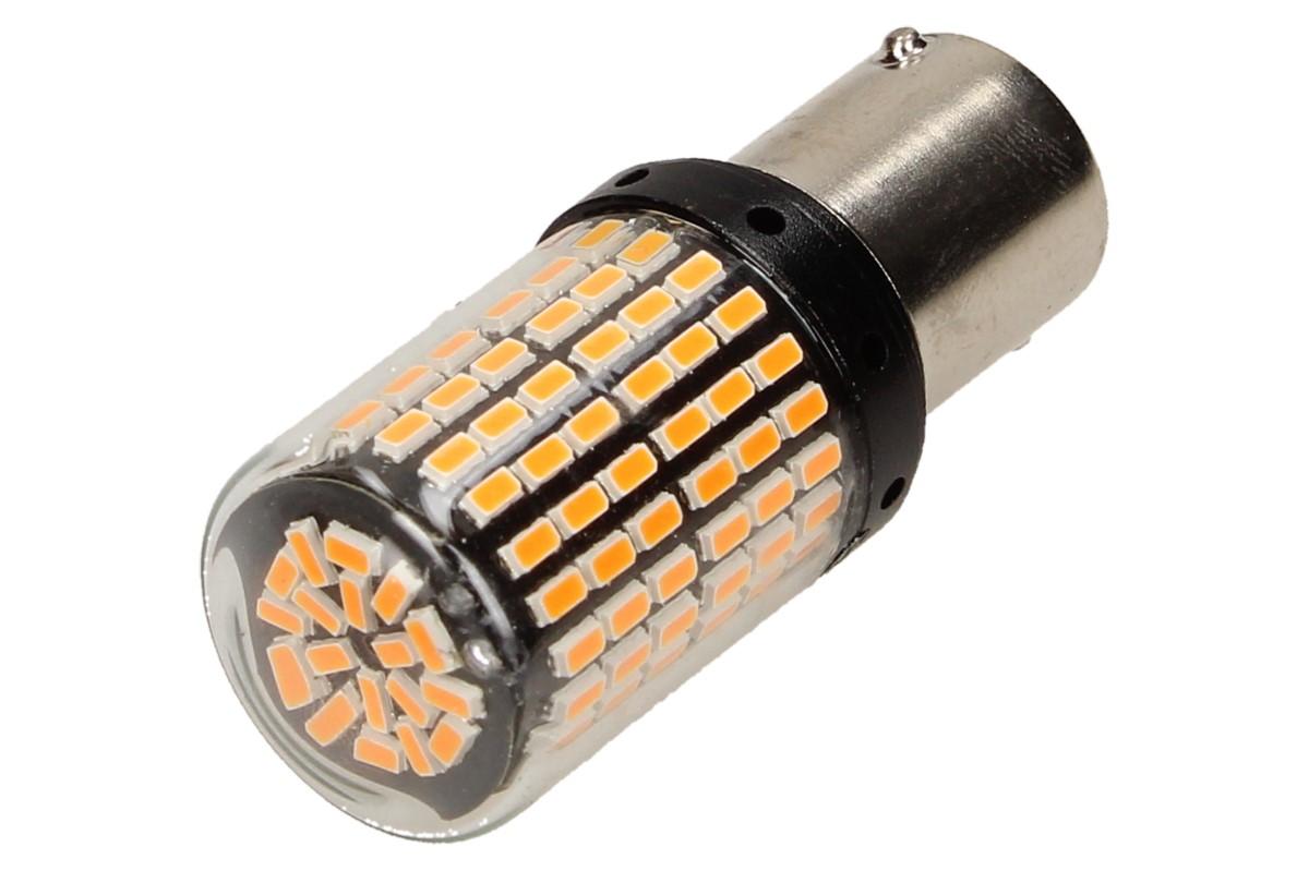 Oranžová LED žárovka do auta BAY15s je vhodná pro použití jako blinkr nebo ukazatel směru na vozidle. Tento typ žárovek je vyráběn s jedním pólem, což umožňuje jednoduchou výměnu s tradičními halogenovými žárovkami.