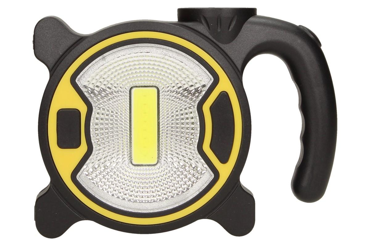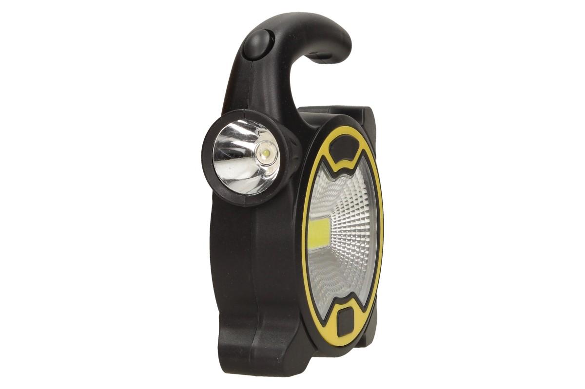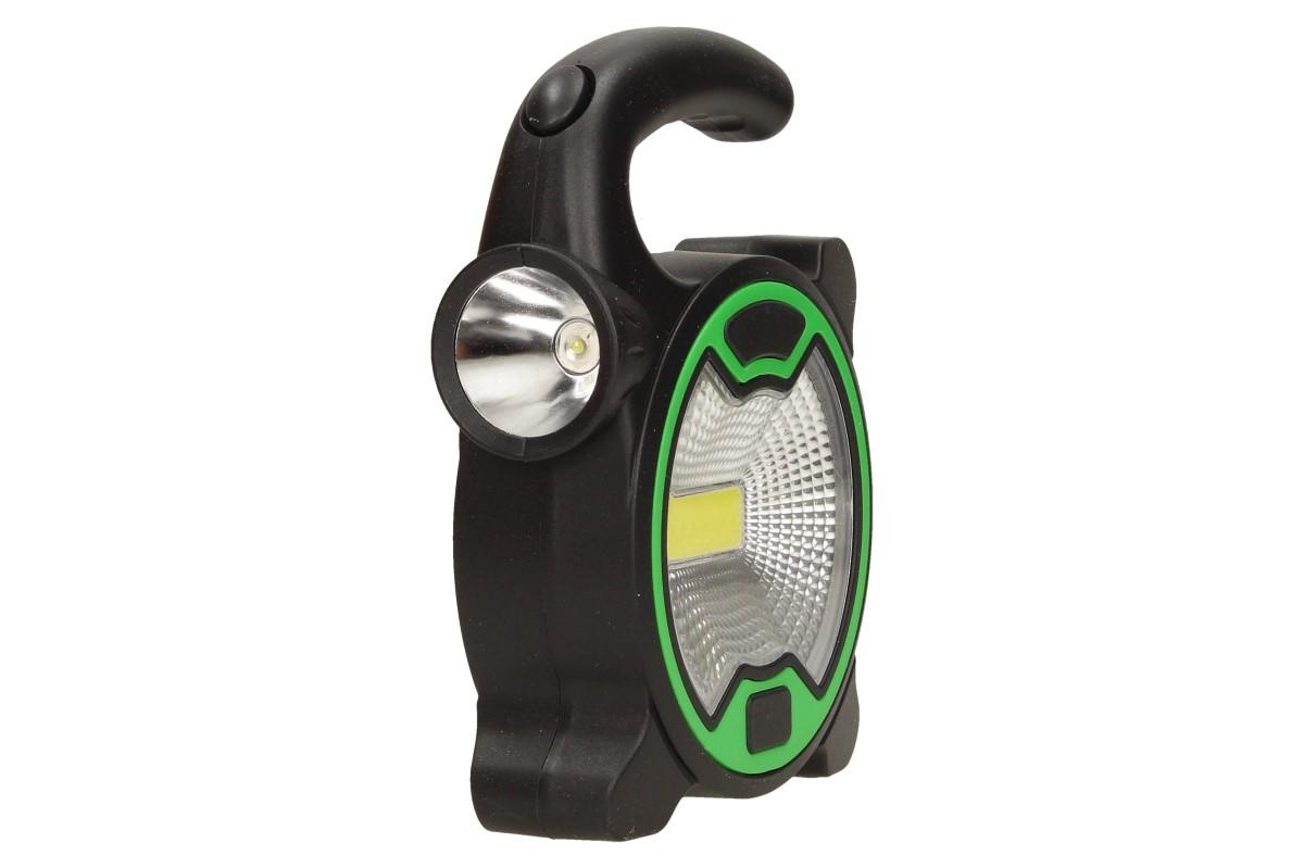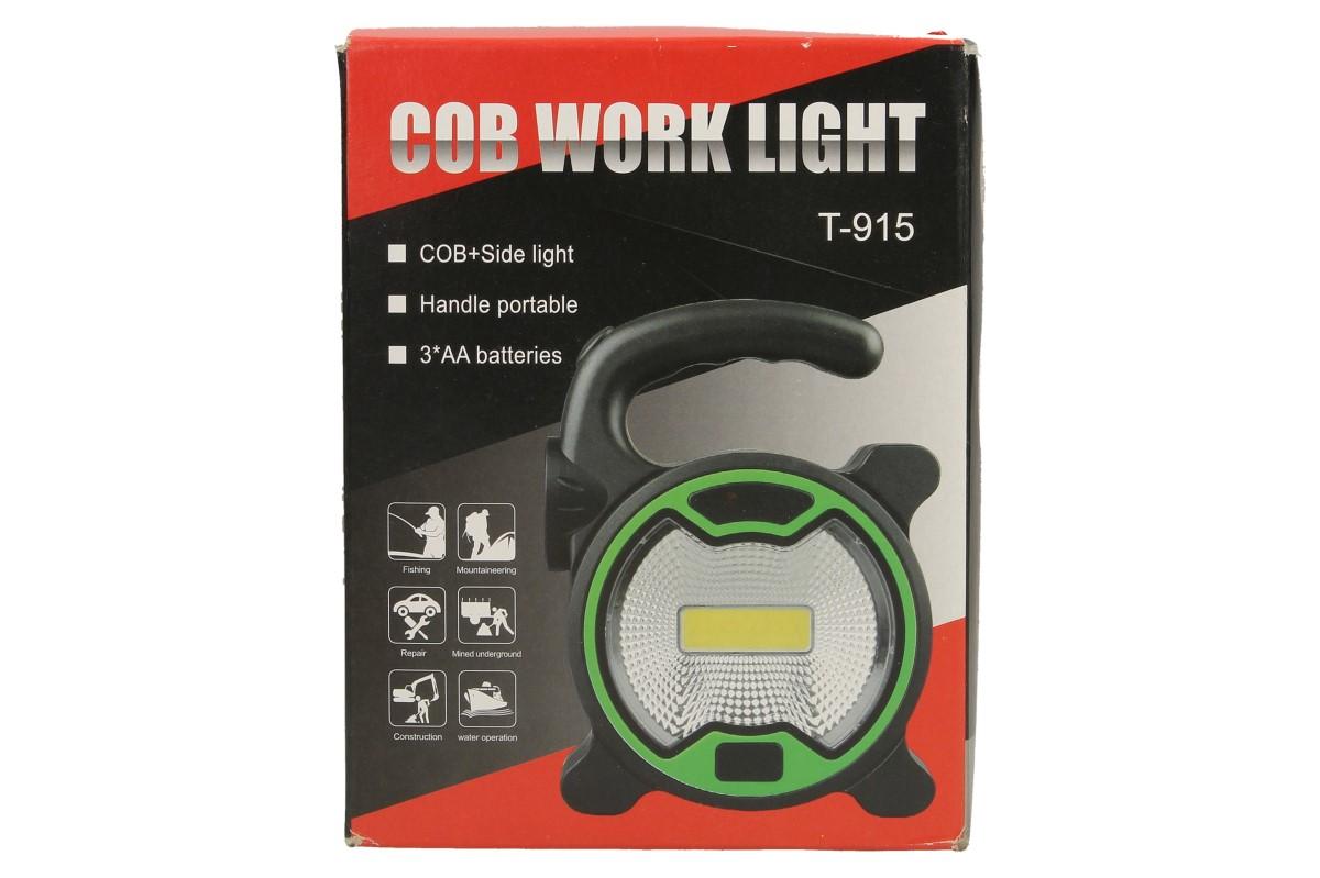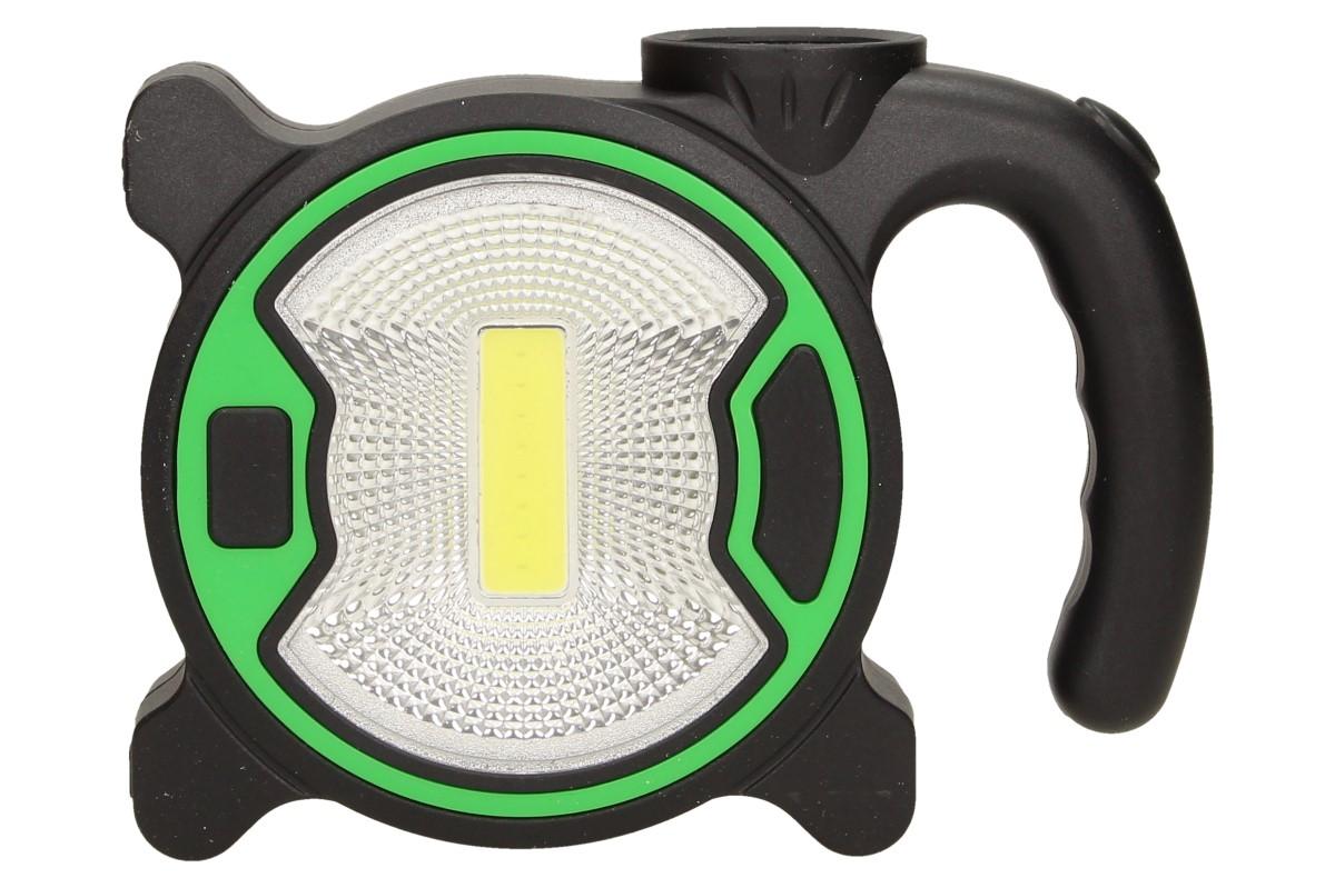 Multifunkční pracovní světlo COB LED s postranním světlem T-915 je geniální pomocník při práci venku i uvnitř a to především ve tmě. Malá, lehká a přenosná velikost světla, vám pomůže tam, kde ostatní světla selhávají. Program světla se snadno přepne na ergonomicky tvarované rukojeti. Můžete si vybrat jestli chcete svítit hlavním světlem COB LED nebo postranním malým LED světlem. Praktický držák do ruky, poslouží i jako závěsné ucho. Světlo stojí samostatně na všech plochách. Napájení je pomocí 3x AA baterií (není součást balení). Ideální pro kemping, rybaření, horskou turistiku, ale také při výkopových pracech, opravách atd. Toto světlo dodáváme ve dvou barvách, zelená a žlutá.