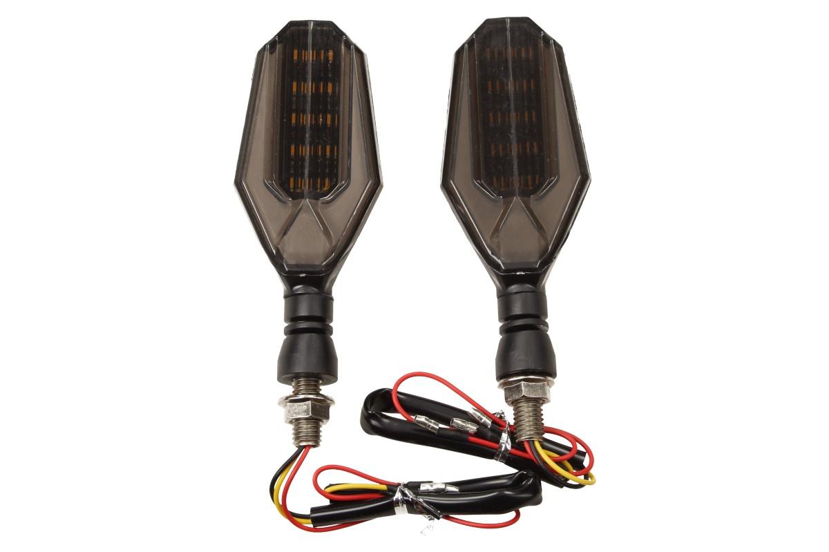 LED směrová světla na motorku HT-9112 jsou vyrobena z kvalitního a pevného plastu, opatřena průhledným sklíčkem. 10 jasných LED diod vám zajistí vysoký stupeň svítivosti, tudíž Vás na silnici nikdo nepřehlédne odbočovat. Instalace se provádí pomocí matic. Nemusíte se bát, že se vám brzy rozbijí, tato směrová světla jsou otřesuvzdorná a odolná proti vodě.