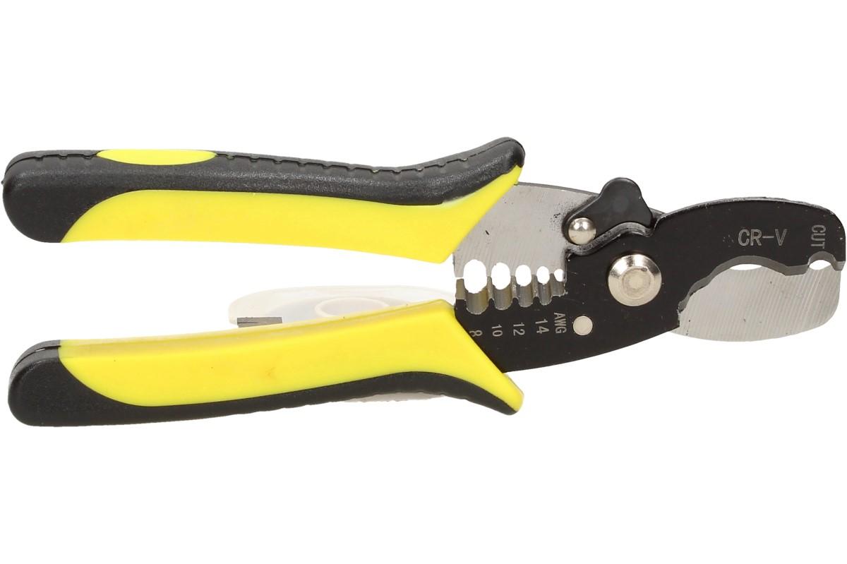 Multifunkční odizolovací kleště ocel, guma. Pro odstranění izolace vodíče, nebo jeho stříhání. Vhodné pro jednodrátovéi dvoudrátové vodiče a vodiče s jemnými dráty. Nastavení na pět možných průměrů drátu, či libovolně,dle šikovnosti. Pogumovaná rukojeť, pojistka a vratná pružina zaručuje komfortní použití.