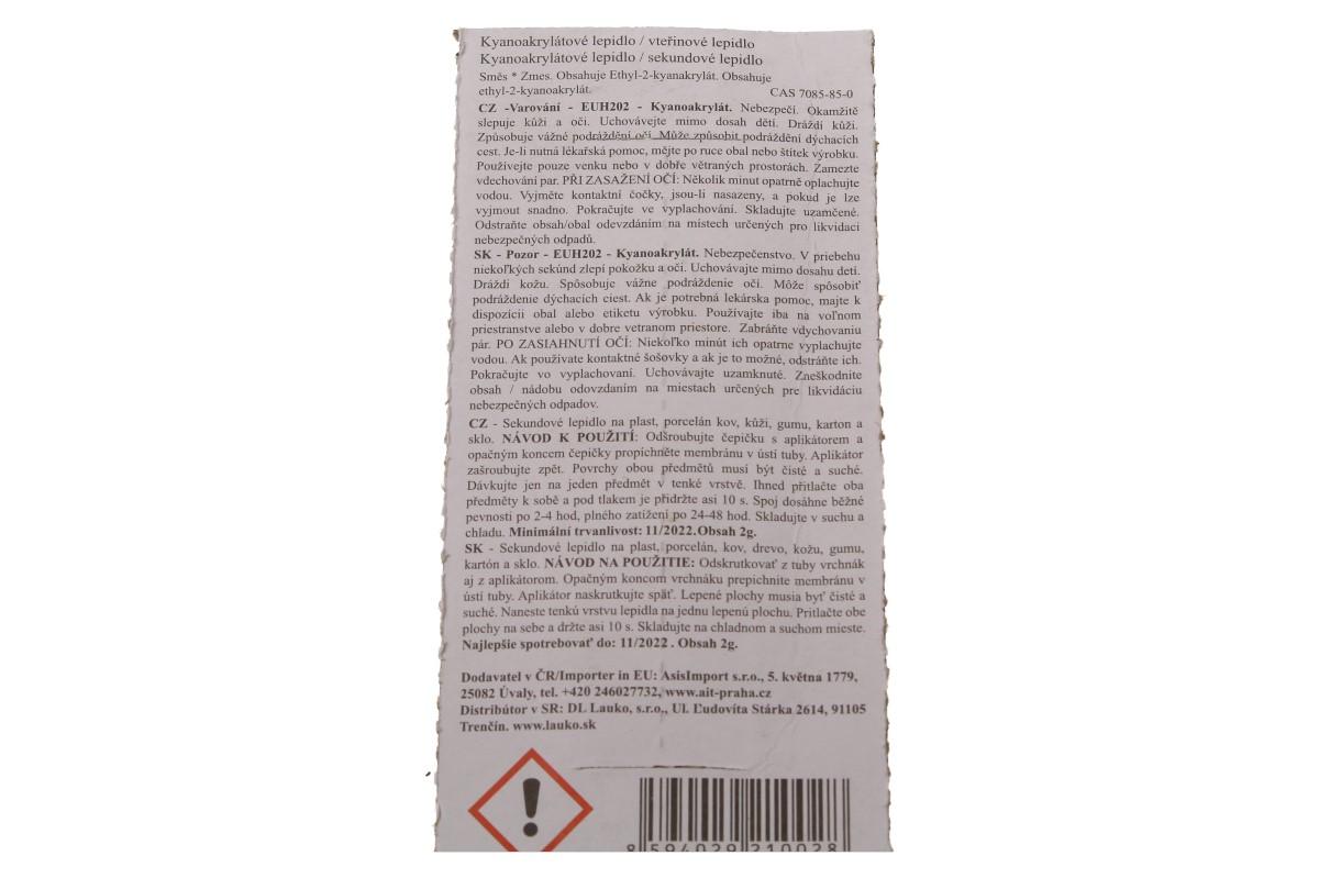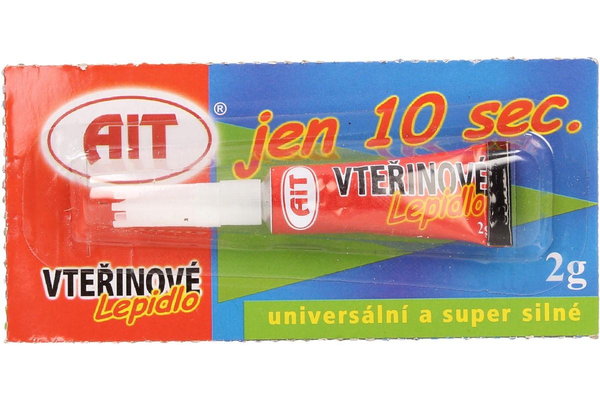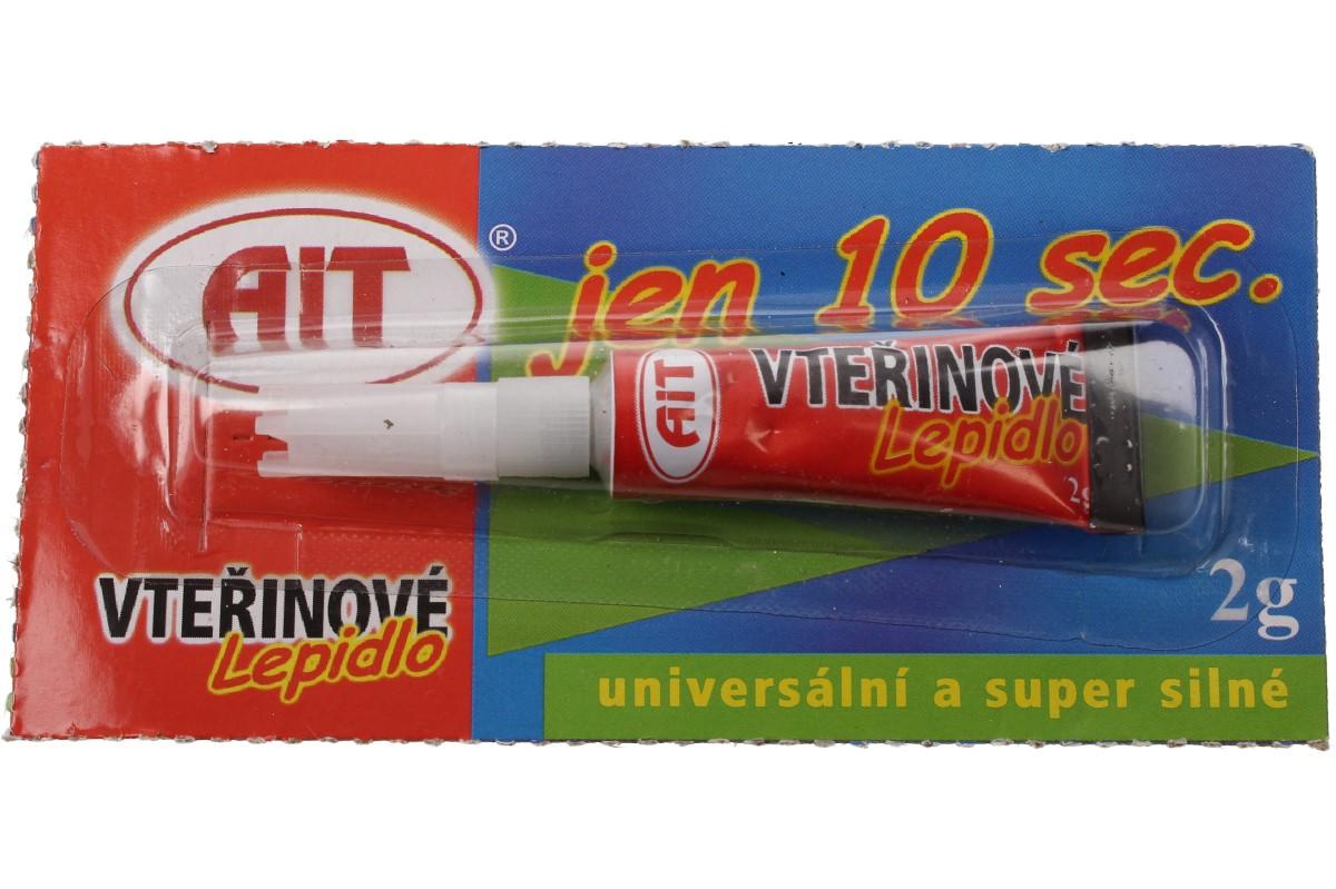 Vteřinové lepidlo AIT. Neuveřitelně silné a univerzální vteřinové lepidlo,vhodné pro rychlé lepení. Toto Kyanoakrylátové lepidlo můžete použít na všechny možné povrchy, jako je plast, keramika,dřevo,kov, sklo guma. Při lepení dejte pozor na vaši pokožku a vaše oči. varování na zadní straně obalu.