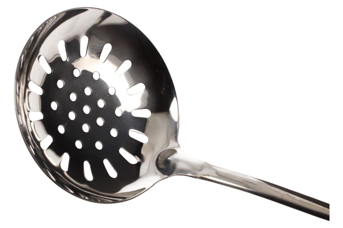 Nerezová cedící naběračka v čínském stylu- Jako dělaná pro vaření a servírování nudlí, těsovin, dušené zeleniny masa a mnoho dalšího. Naběračka je opatřena očkem pro snadné zavěšení na vaší kuchyňské lince. Naběračka má průměr 12 cm a je dlouhá 35 cm. Ideální pro mytí v myčce jelikož je jednodílná, tudíž vás nečekají žádné zbytky jídla mezi spoji.