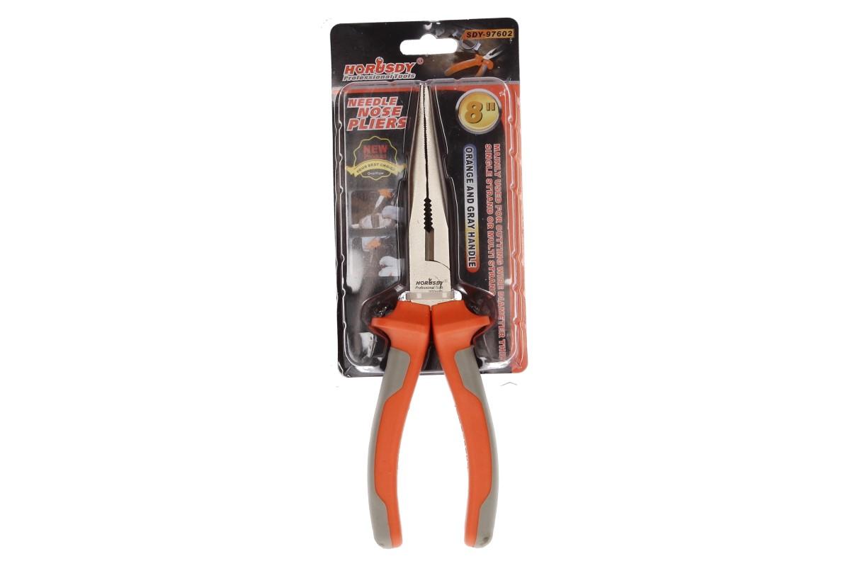 Kleště jehlové 200mm/8 “ Vám pomůžou při té nejjeměnší práci ať už v dílně nebo servisu. Všechny ocelové povrchy jsou přebroušené a chráněné proti korozi. Kleště mají dlouhou životnost a jsou dobře tvarované. Pro lepší držení a manipulaci v ruce je rukojeť pogumovaná.