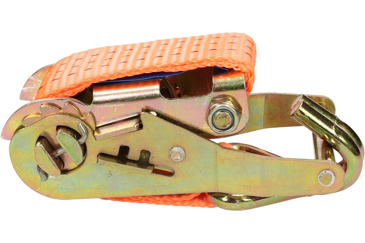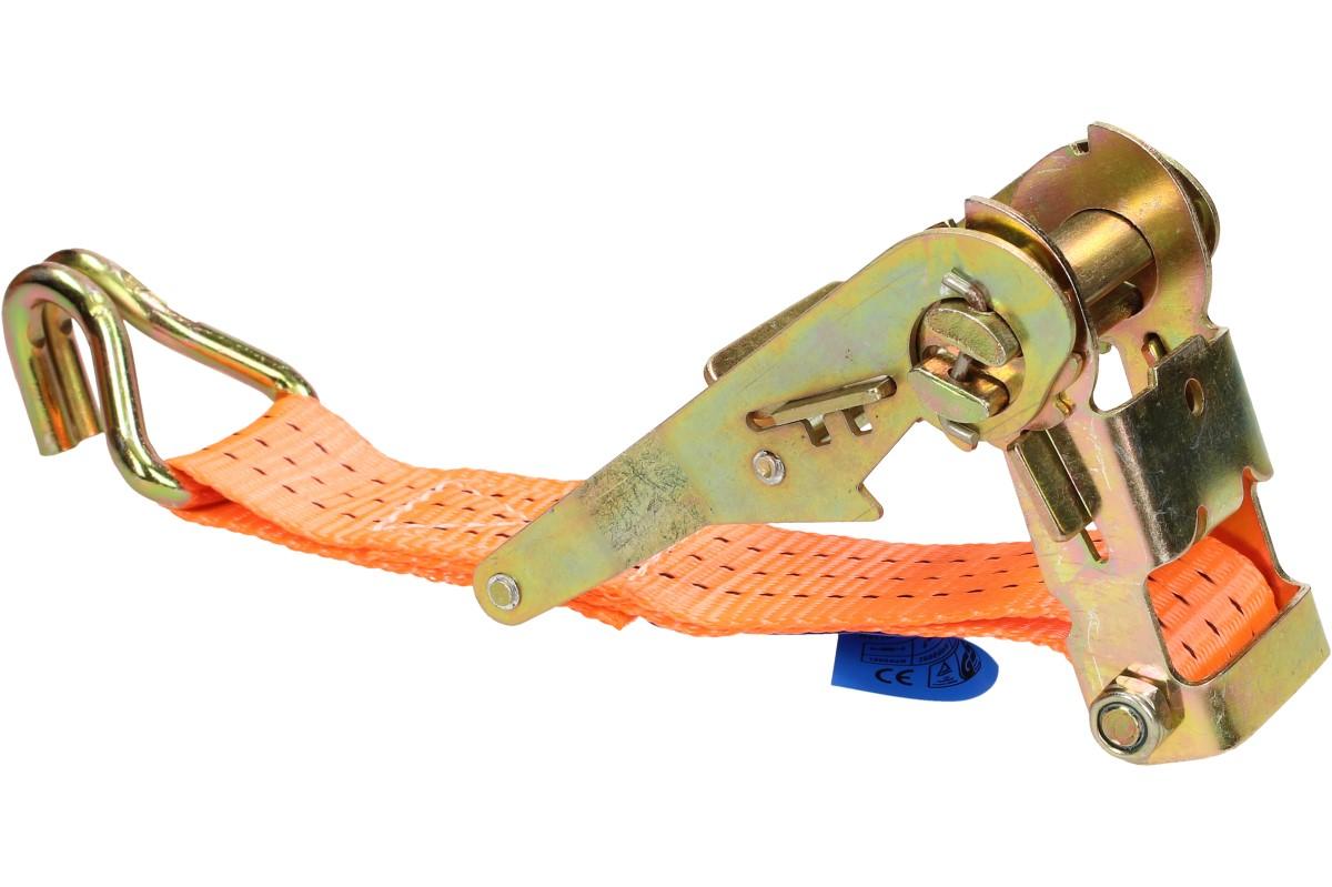 Upínací popruh 2m s ráčnou splňuje legislativu EU a normu EN 12195-2. Je extrémně pevný. Tažná síla popruhu je 1T. Profesionální upínací popruh se skládá z 20 cm dlouhého popruhu s napínací ráčnou a druhého volného popruhu, který má 2 metry a ráčnou se provléká. Jeho tažná síla a nosnost činní 1 tunu. Tato kurta je vyžadována německými celníky při přepravě težkých nákladů. Upínací popruhy se používají v rozsahu teplot od –40C° do +100C° a vynikají svou odolností na anorganické kyseliny.