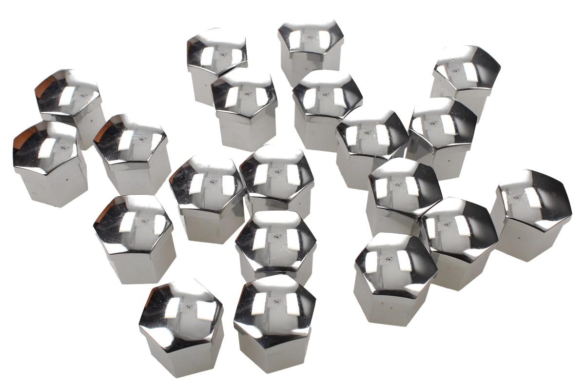 Sada ozdobných krytů pro šrouby kol stříbrné 17 mm 20 ks