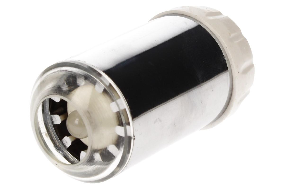 LED svítíci perlátor na vodovodní baterii vás vždy a včas upozorní na teplotu vody. Závit na perlátoru je stejný, jako na běřných vodovodních bateriích. Princip fungování tohoto perlátoru je velmi prostý. Uvnitř perlátoru je umístěna miniaturní turbína, která vyrábí potřebnou energii na rozsvícení světla, tudíž nepotřebujete žádné baterky. Kde je malý průtok vody, nebo kde je průtok omezen nízkým příkonem, perlátor nebude fungovat. Malý průtok vody by nemusel turbínku roztočit a tudíž by nesvítil. Perlátor za vás bude detekovat teplotu vody. Když voda teče, LED se okamžitě rozsvítí a automaticky mění barvu podle teploty vody. Tuto funkci využijí rodiče malých dětí např. při přípravě koupele pro miminko.