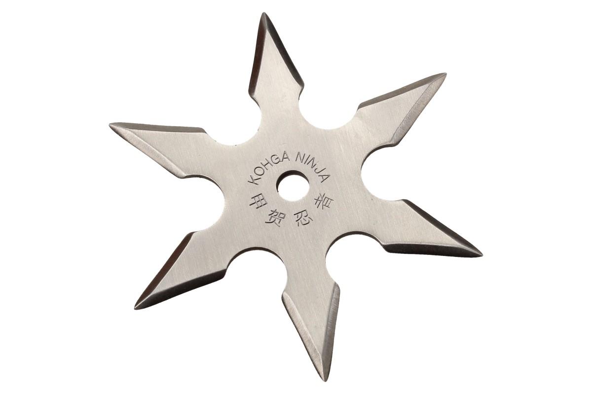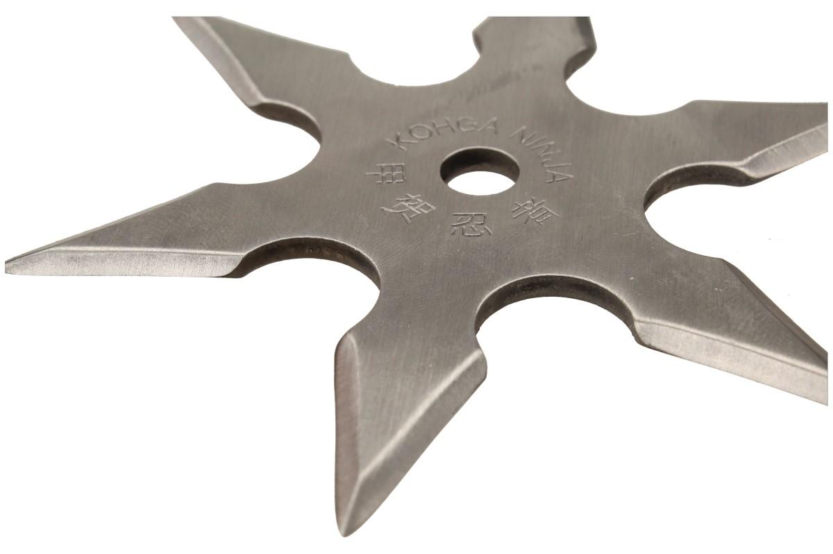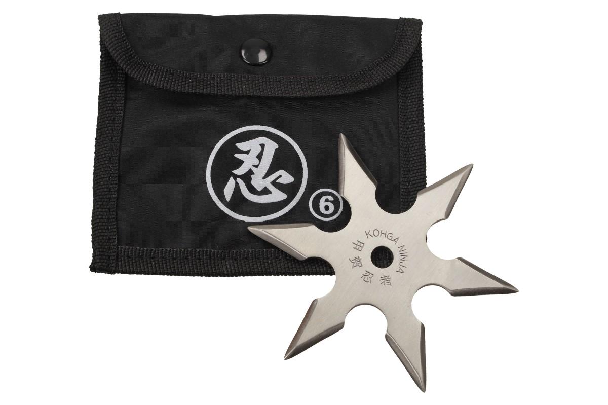Shuriken, běžně označovaný jako ninja hvězdy nebo vrhací hvězdy, je pravděpodobně nejoblíbenější zbraní používanou v Ninjutsu. Chromovaná šesticípá hvězda měří v průměru 9,5 cm. To je dokonalá velikost mezi vrhacími hvězdami, jsou příliš malé na to, aby zapříčinili smrt, a příliš velké na to, aby házely přesně. Vrhací hvězda, jako je tato, je skvělá pro házení po vašem dvorku, zahradě a všude tam, kde se pohybuje minimum lidí. Po vytvoření terče, můžete porovnávat své dovednosti s kamarády, kolegy z práce, atd. Pokud jste spíše typem typu ,,walk-around-with-my-shuriken´´, černé nylonové pouzdro má poutko na opasek, aby byla vaše vrhací hvězda vždy na dosah. Objednejte si dnes svou vlastní vrhací hvězdu a začněte trénovat!