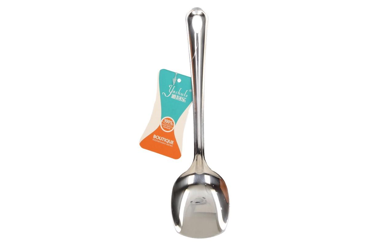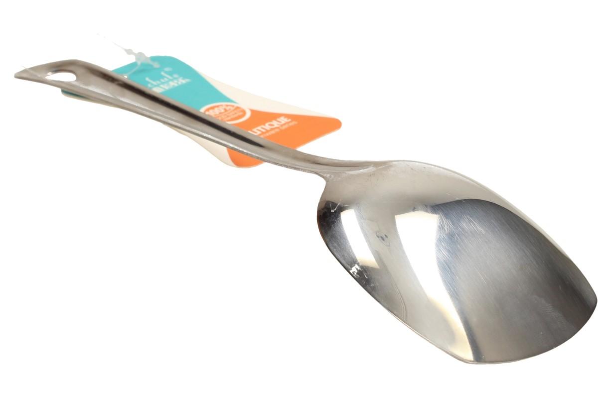 Je to užitečné do běžného provozu — nerezová obracečka Nerezová obracečka je vyrobena z leštěné nerezové oceli a má držadlo s otvorem na zavěšení..