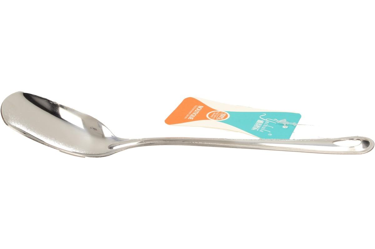 Nerezová obracečka 24 cm je vyrobena z leštěné nerezové oceli a má držadlo s otvorem na zavěšení. Je odolná vůči korozi a nadměrnému teplu. Vyznačuje se jednodílnou konstrukcí, která zastavuje hromadění zbytků potravin v štěrbinách a minimalizuje opotřebení. Využijete ji při nandávání masa, zapečených těstovin, vajíček a k otáčení jídla např. na pánvi. Praktickým a jednoduchým designem zapadne do každé kuchyně. Llehce omyvatelná i v myčce.
