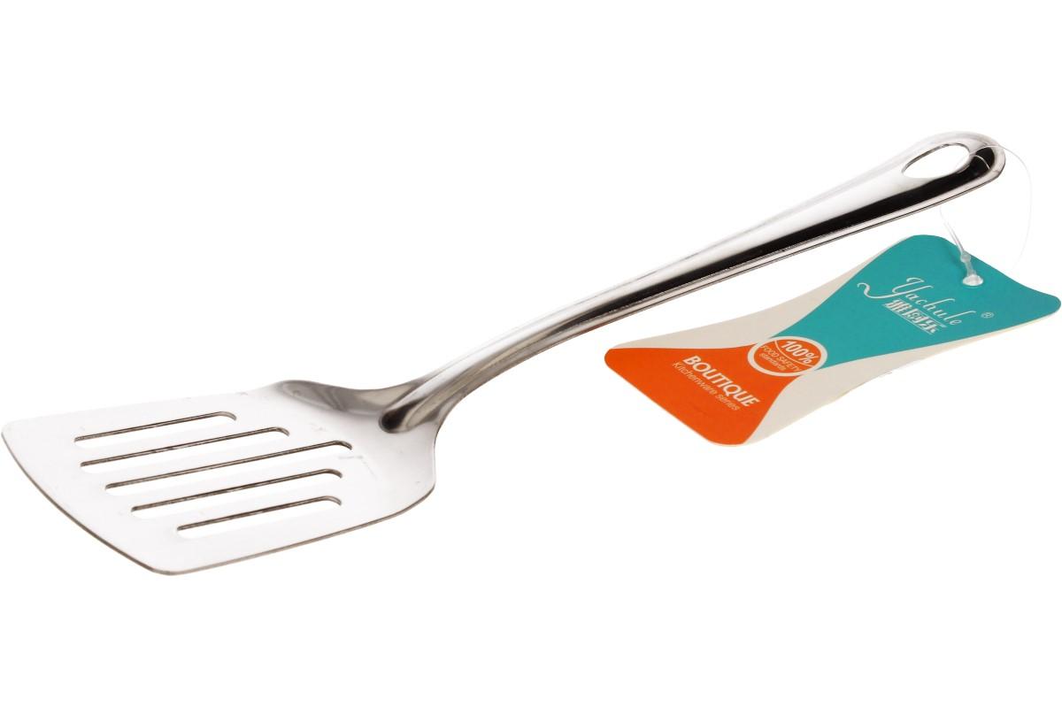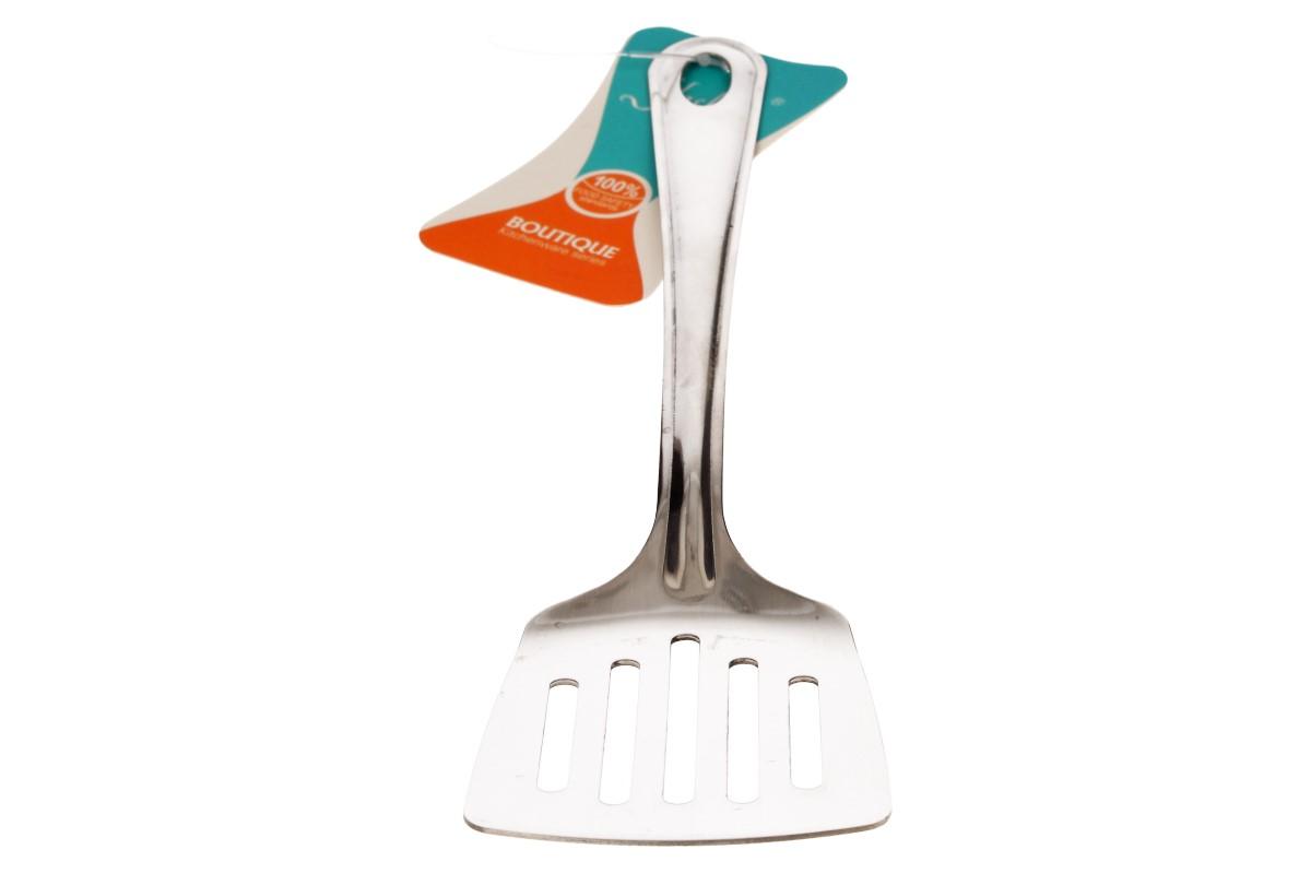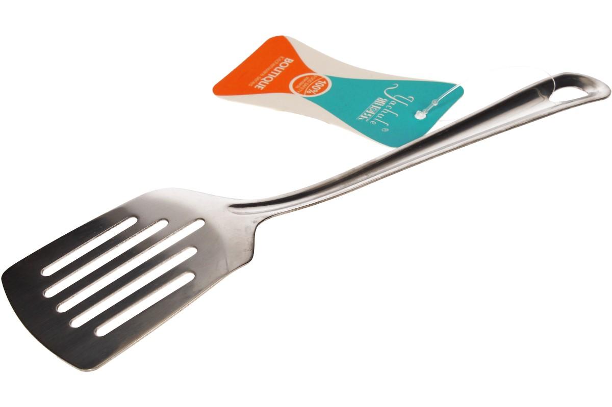 Nerezová obracečka s otvory 25 cm je vyrobena z leštěné nerezové oceli a má držadlo s otvorem na zavěšení. Je odolná vůči korozi a nadměrnému teplu. Vyznačuje se jednodílnou konstrukcí, která zastavuje hromadění zbytků potravin v štěrbinách a minimalizuje opotřebení. Využijete ji při nandávání masa, zapečených těstovin, vajíček a k otáčení jídla např. na pánvi. Praktickým a jednoduchým designem zapadne do každé kuchyně. Llehce omyvatelná i v myčce.