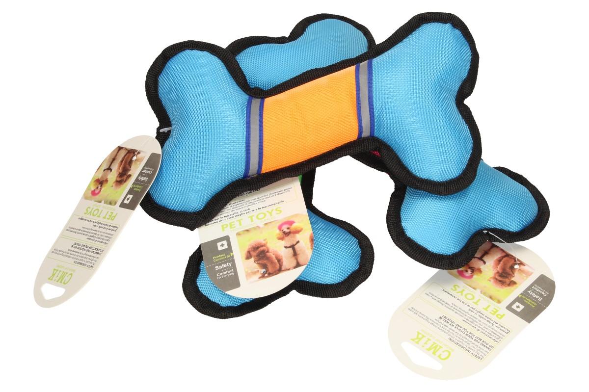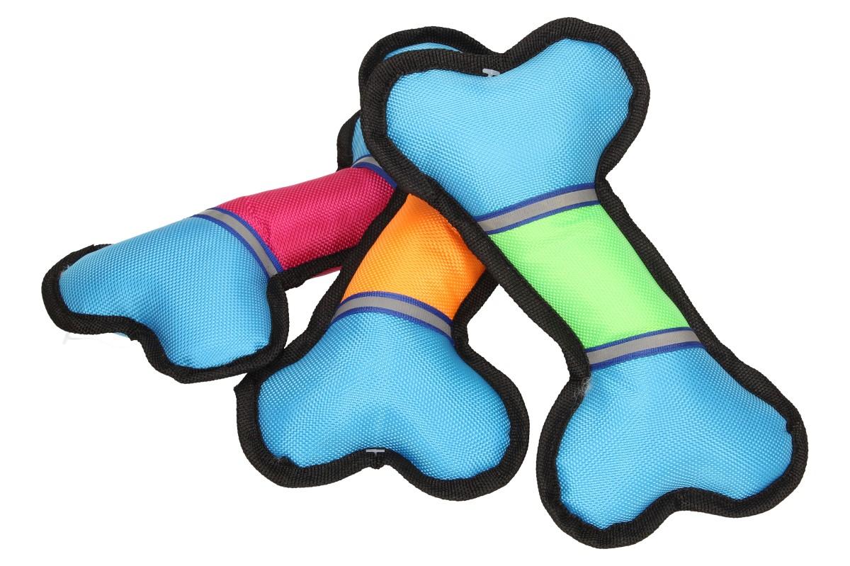 Hračka pro psy ve tvaru kosti je vhodná pro malá i velká plemena. Hračka má v sobě malé pískátko, je ovšem tak malé že při spolknutí pejskovi neublíží, to platí i pro ostatní části hračky (malé úlomky). Kost je vyrobena z pevného polyesteru a a má reflexní proužky. Hračka je pevná a měkká. Dodáváme ve třech barvách: oranžová, růžová a zelená. Potěšte své domácí mazlíčky pohodlnou a útulnou hračkou ve tvaru kosti za příznivou cenu!