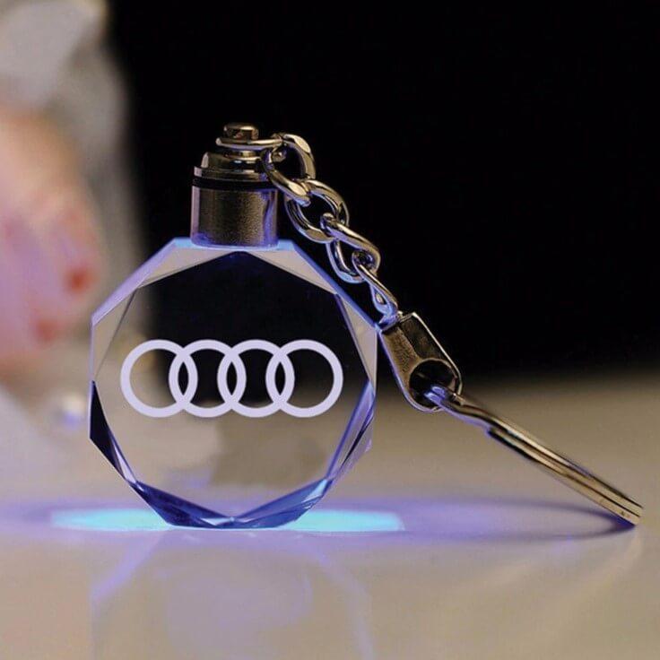 Je to užitečné do běžného provozu — klíčenka skleněná LED - Audi Luxusní skleněná klíčenka s logem Audi je ideální volbou k připnutí nejen na klíče od auta..