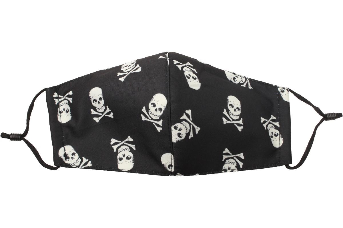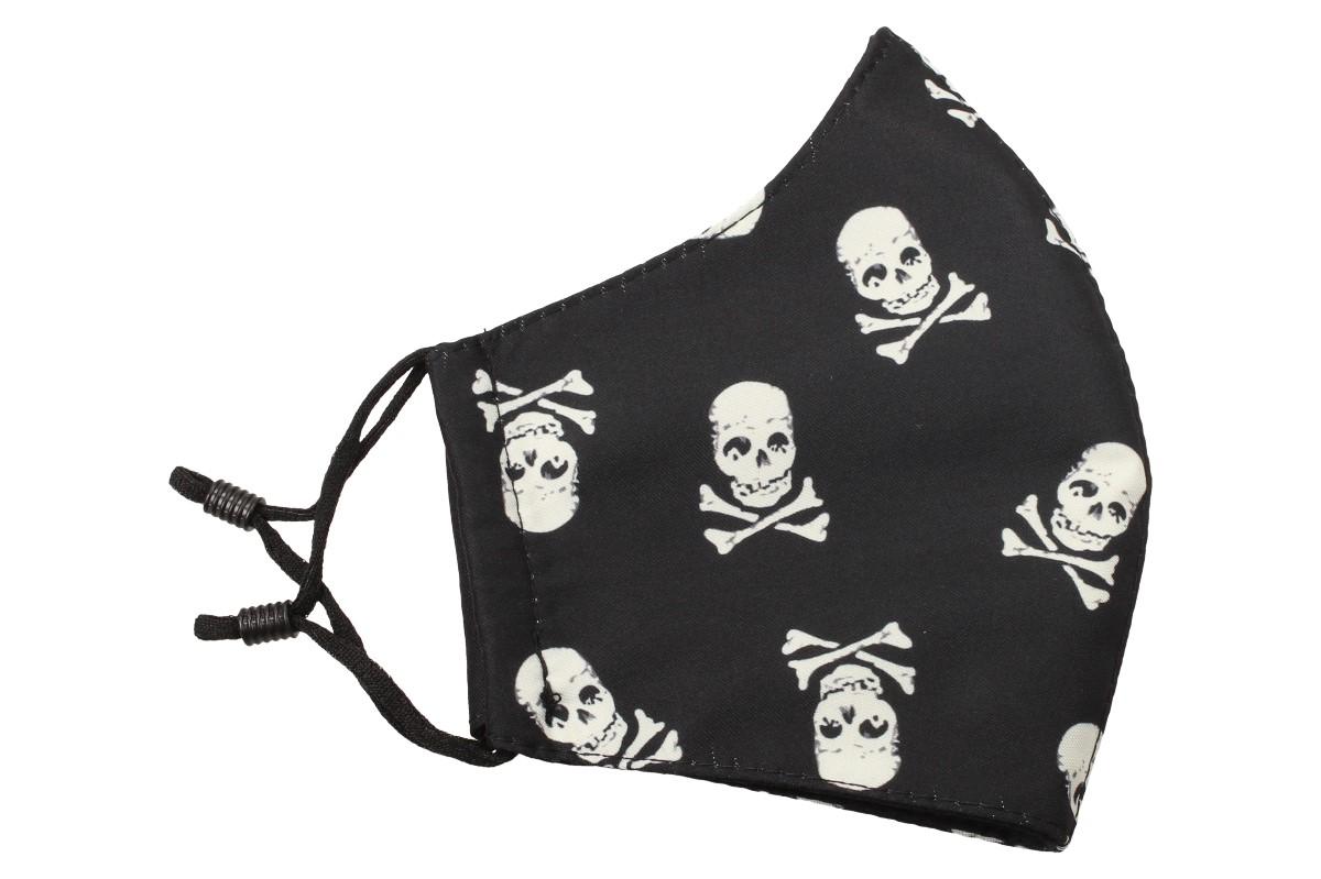 Už vás nebaví jednorázové sterilní roušky, které mají všichni? Roušku s lebkami si zamiluje každý nadšenec tohoto vzoru, pirátů a všeho s tím spojené. Ideálně plní nároky pro jednoduché nasazení při práci, procházce znečištěným prostředím, infekčním prostředí apod.. Když musíme nosit roušku tak ať stojí za to. Splní požadavky nařízení vlády a ještě dobře vypadá. Vysoká prodyšnost umožňuje pohodlné dýchání. Rouška se skládá ze 3 vrstev pevné látky. Velikost je univerzální, ale lze nastavit délku gumiček pomocí gumového kroužku.