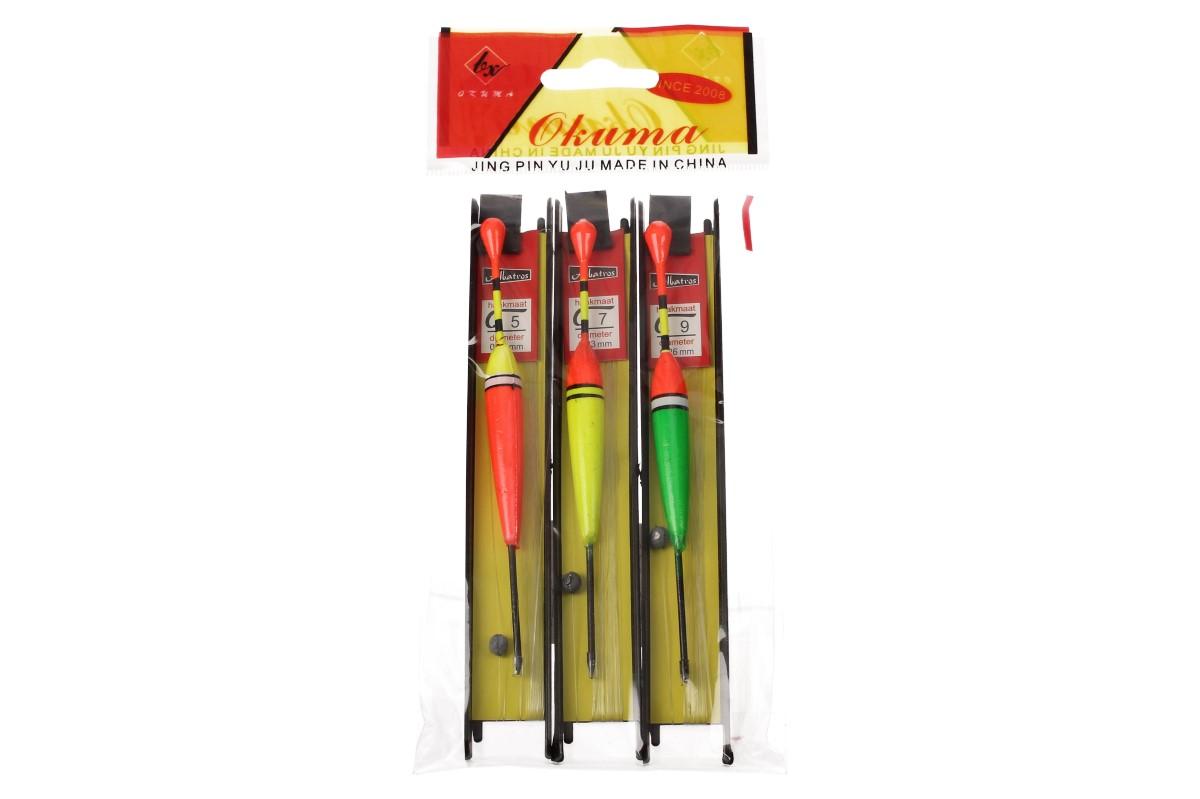 Set kompletně navázaných splávků ve třech různých barvách, nesmí chybět žádnému, správně vybavenému rybáři. Každý má jinou barvu pro snadné rozlišení. Splávky jsou vyvázané olůvky a na konci mají háčky různých velikostí. Tímto způsobem je možné lovit menší ryby. Splávek bude držet návnadu v potřebné hloubce a upozorní vás i na přítomnost ryby tím, že se potopí pod hladinu.